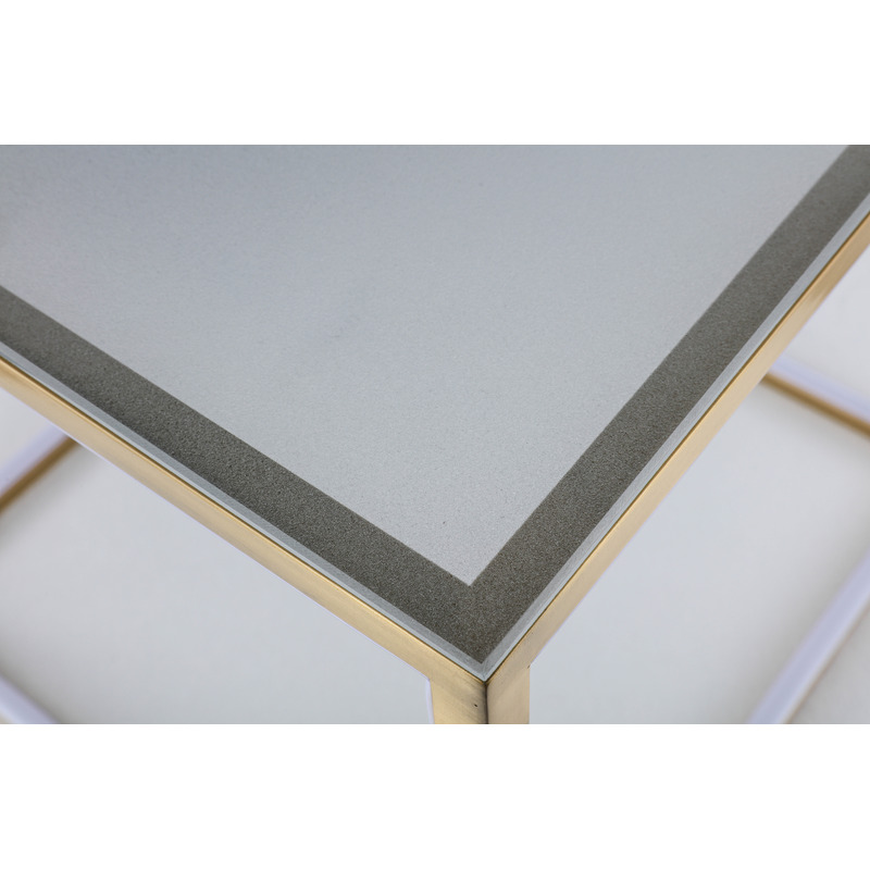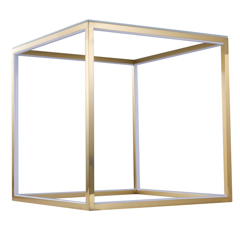 A GOLD ALUMINUM FRAME LED SIDE TABLE WITH A FROSTED GLASS TOP