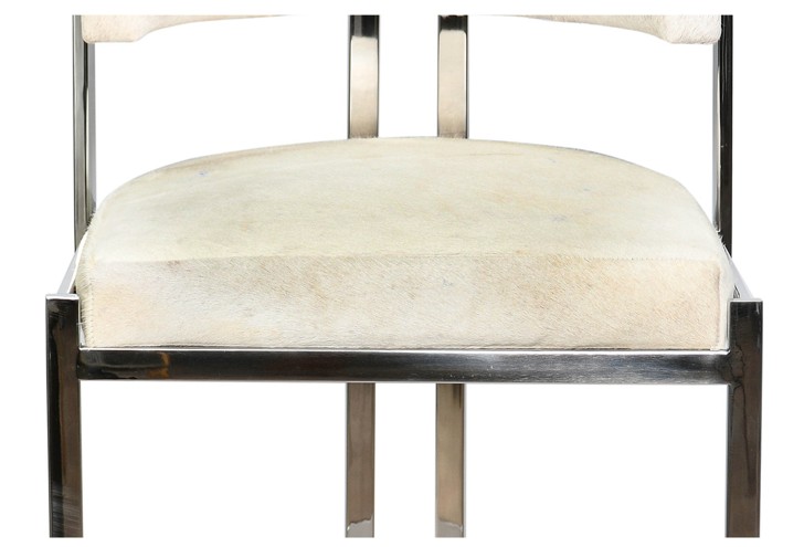 A CHROME STAINLESS STEEL FRAME HIGH CHAIR WITH GREY HAIRLINE LEATHER
