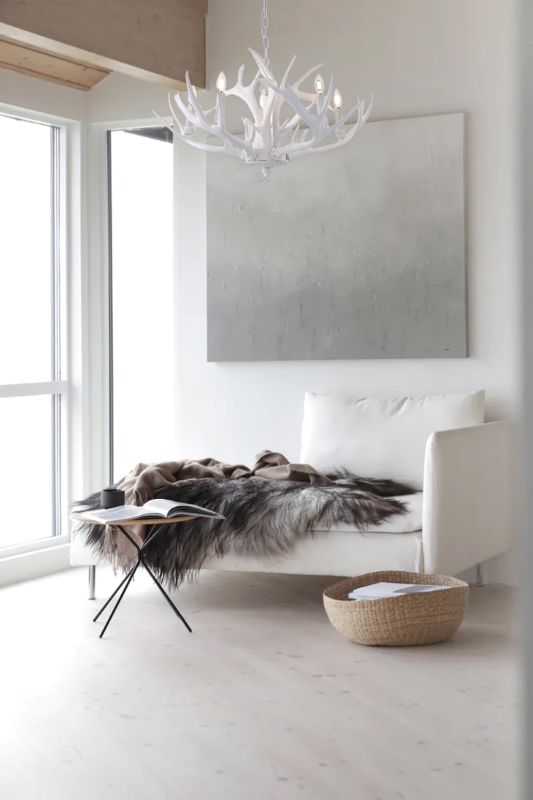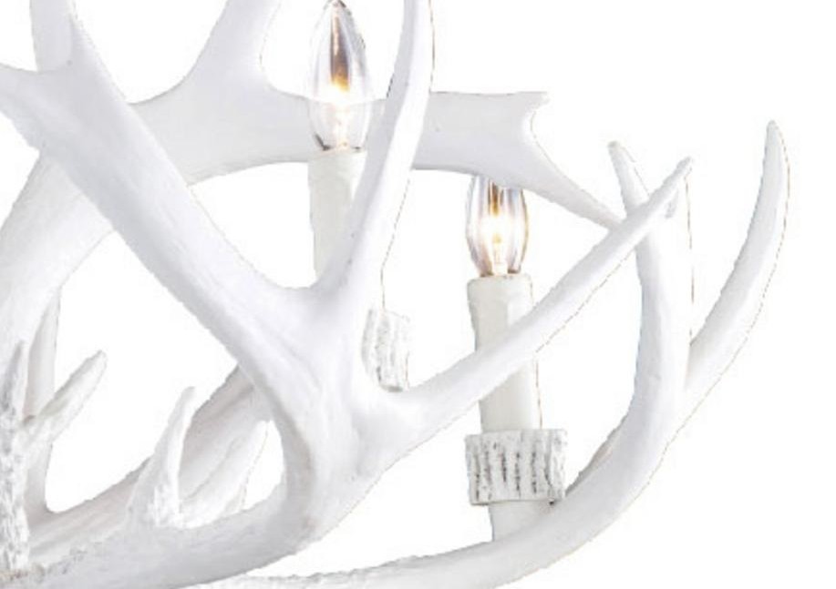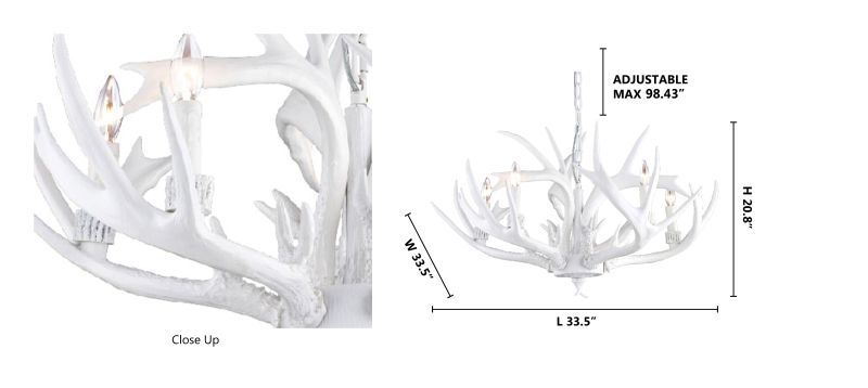 This antler chandelier is a unique and eye-catching lighting fixture that adds a touch of rustic charm to any room. Measuring 33.4 inches in diameter and 20.8 inches in height, this lamp features a white antler polyresin design that provides a natural and organic look. The five E12 sockets (Bulbs Not Included) can accommodate up to 40W of light, making it perfect for illuminating a small to medium-sized area. With its rustic design and warm glow, this lamp is a great choice for adding a touch of country charm to a foyer, living room, dinning room, or entryway.