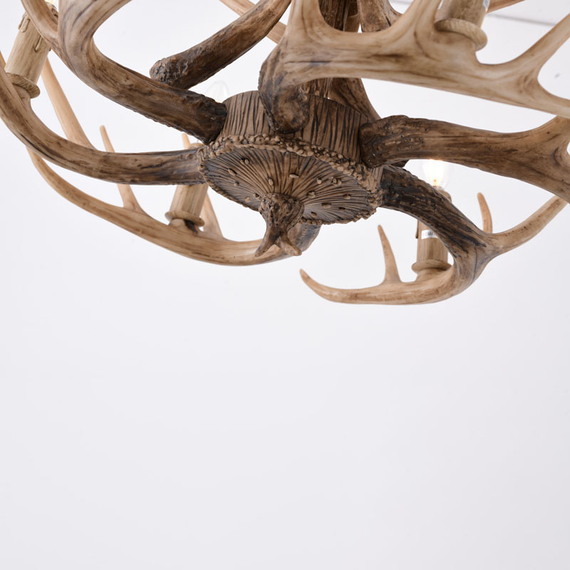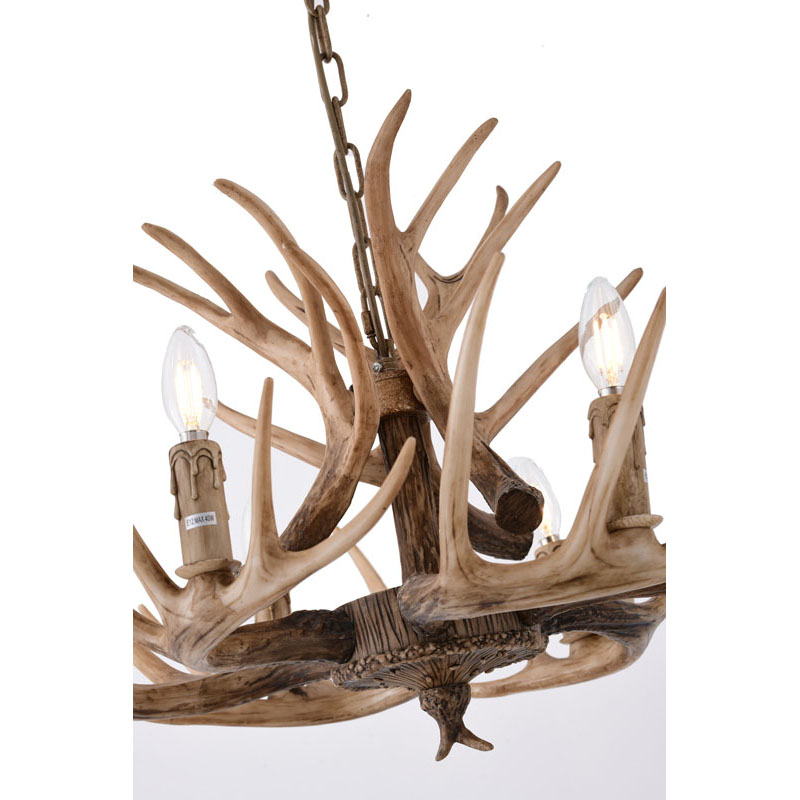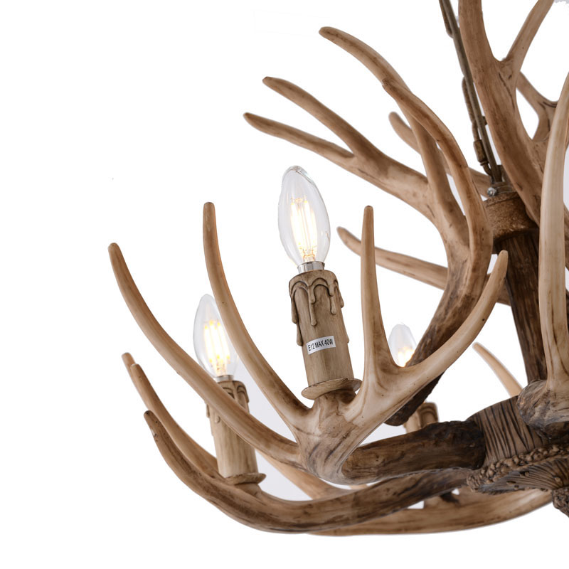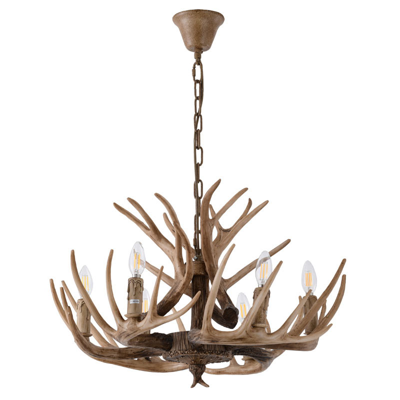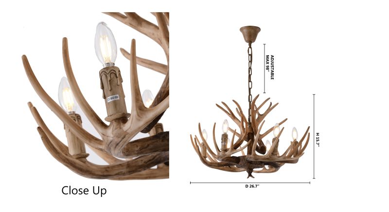 This antler chandelier is a unique and eye-catching lighting fixture that adds a touch of rustic charm to any room. Measuring 26.7 inches in diameter and 15.7 inches in height, this lamp features a white antler polyresin design that provides a natural and organic look. The 6xE12 sockets (Bulbs Not Included) can accommodate up to 60W of light, making it perfect for illuminating a small to medium-sized area. With its rustic design and warm glow, this lamp is a great choice for adding a touch of country charm to a foyer, living room, dinning room, or entryway.