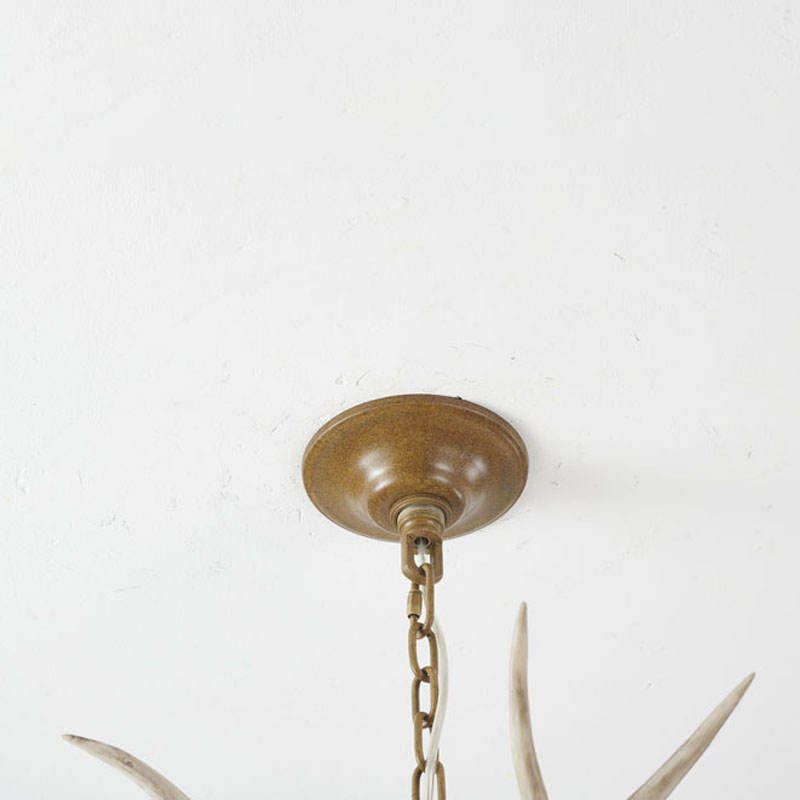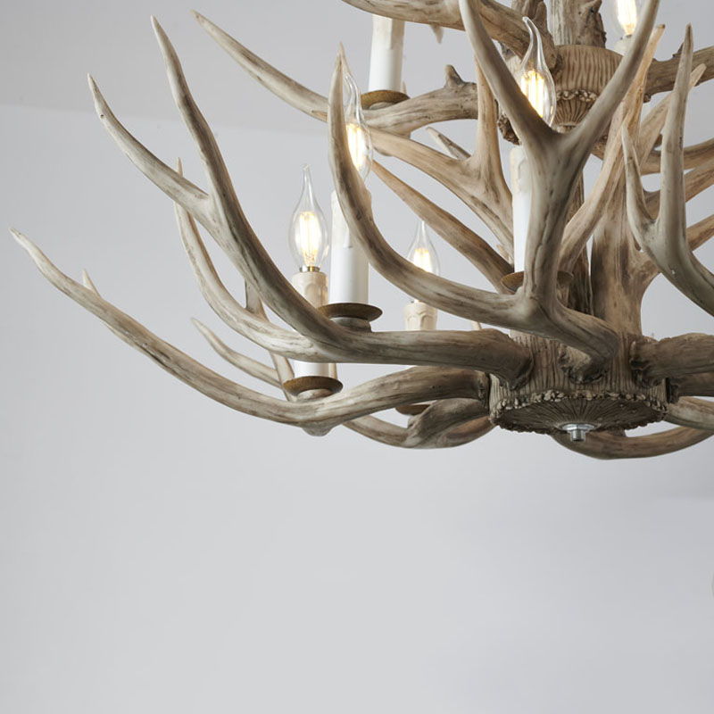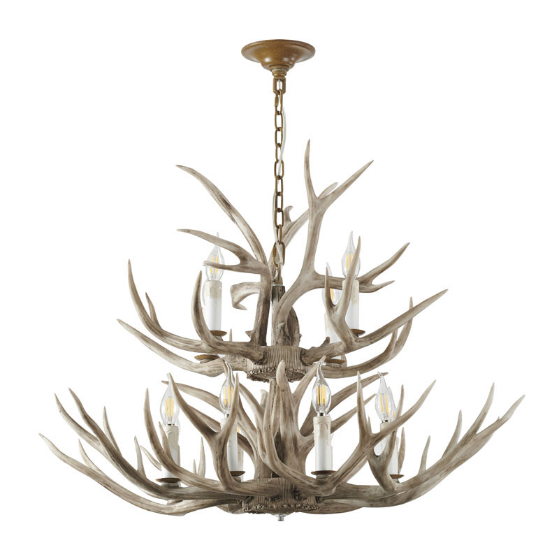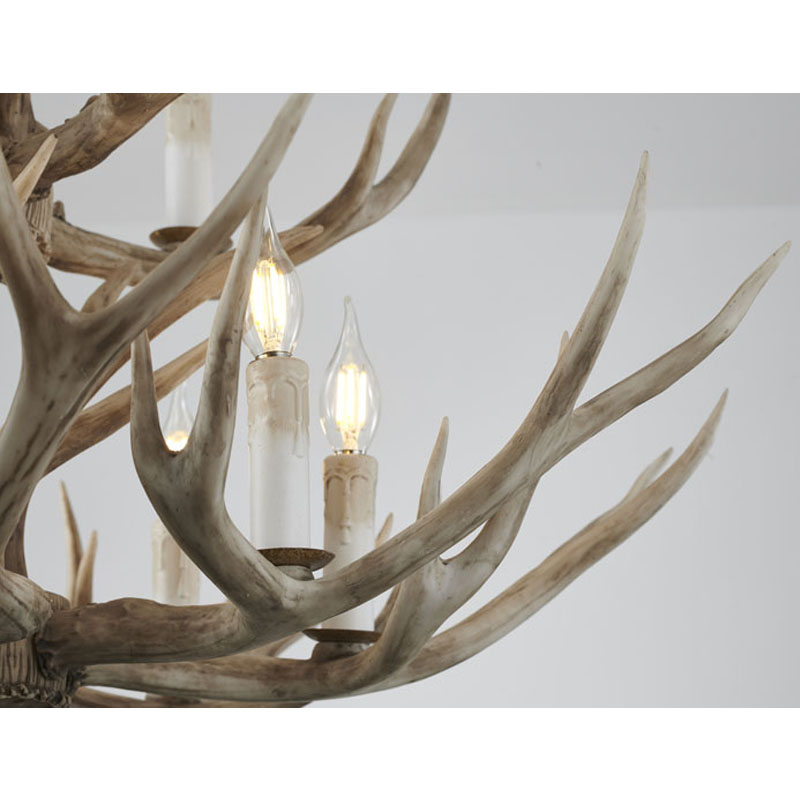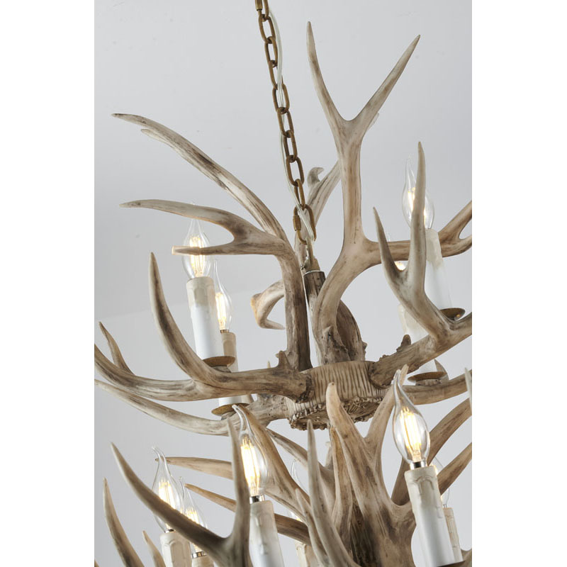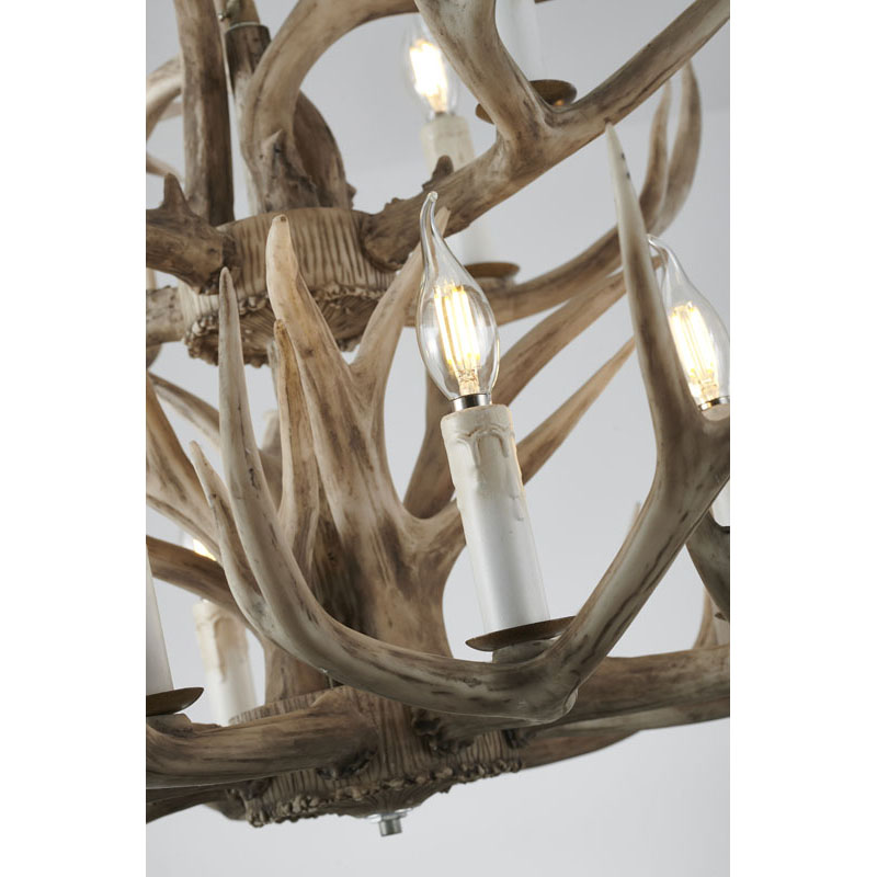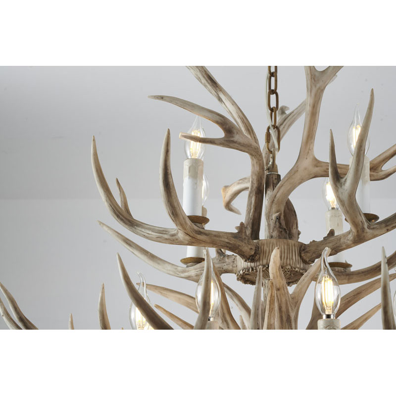 A TWO TIER POLYRESIN ANTLER HORN CHANDELIER WITH CANDLE LIGHT BULBS