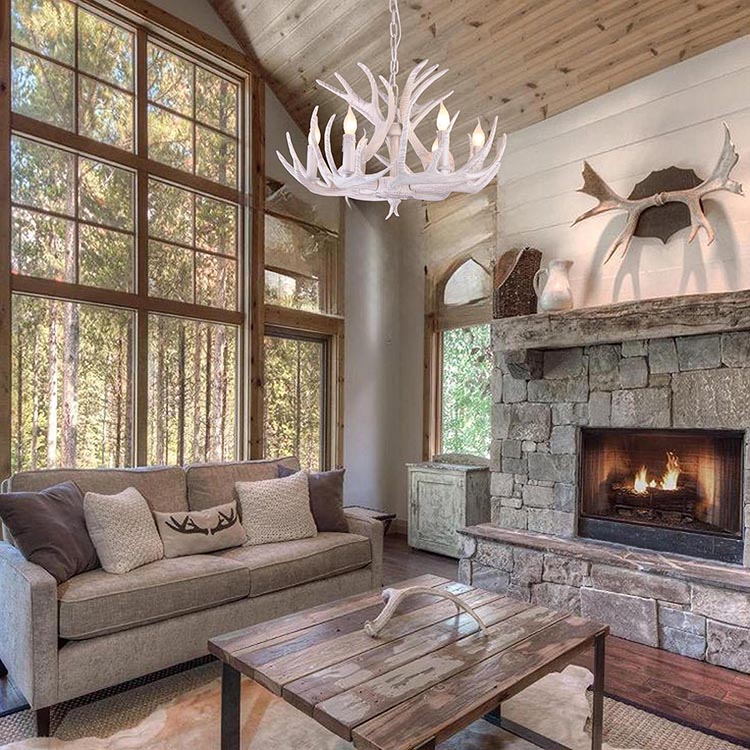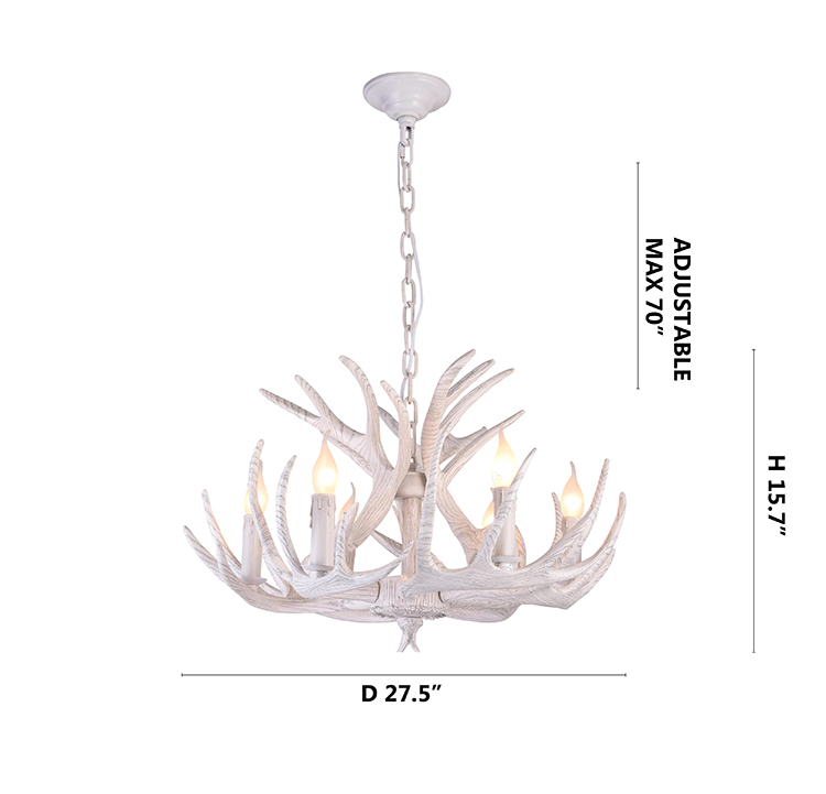 A FAUX WHITE ANTLER CHANDELIER WITH WHITE HARDWARE