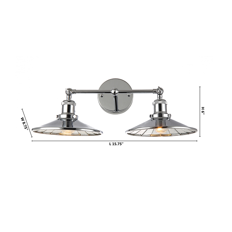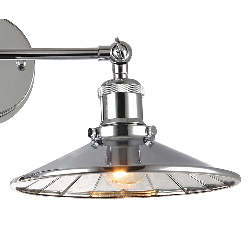 CHROME METAL TWO LIGHT WALL SCONCE WITH MIRROR INTERIOR ON SHADES