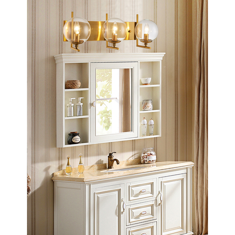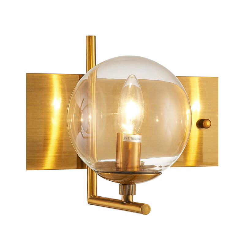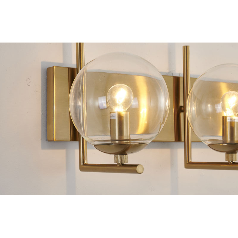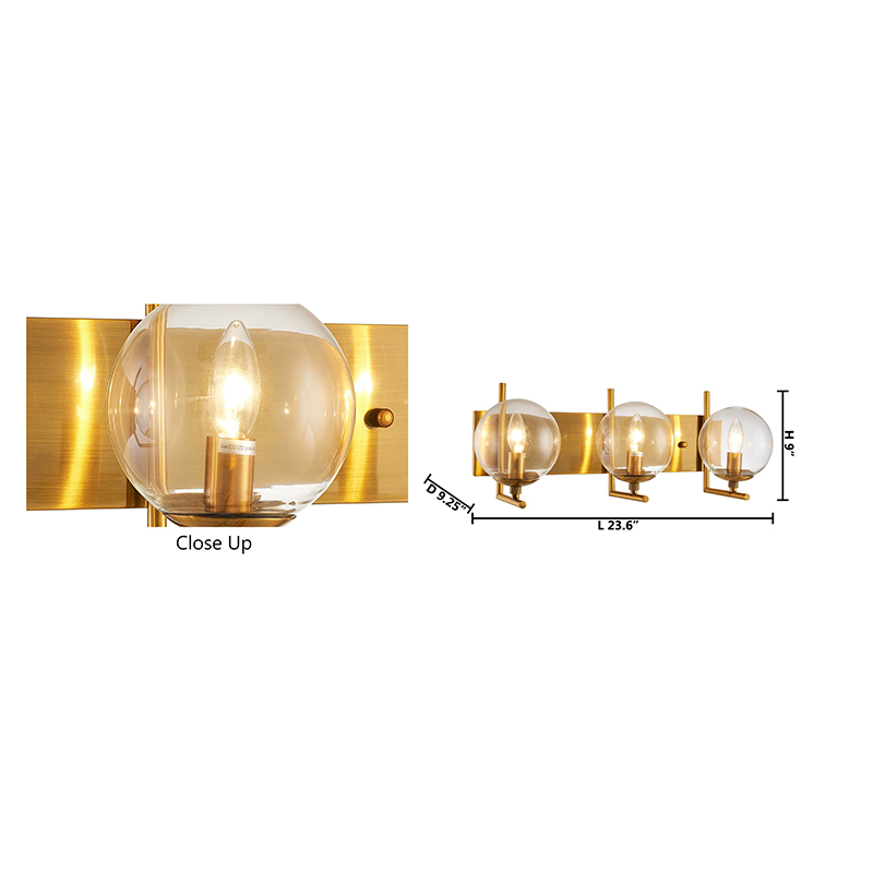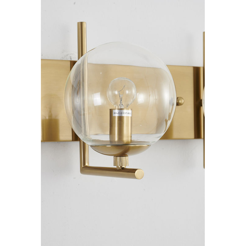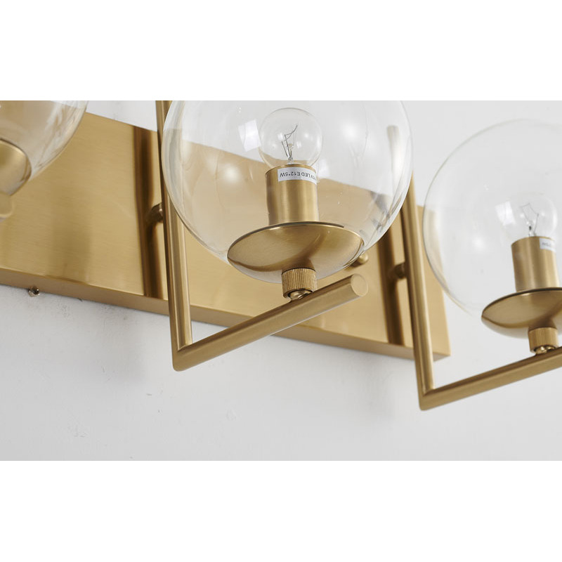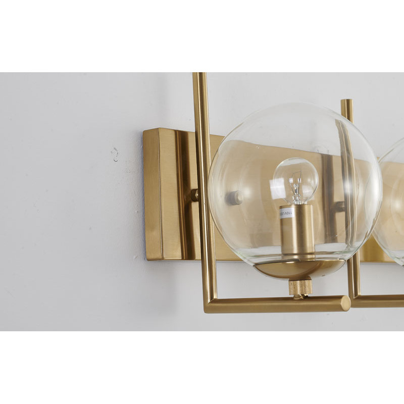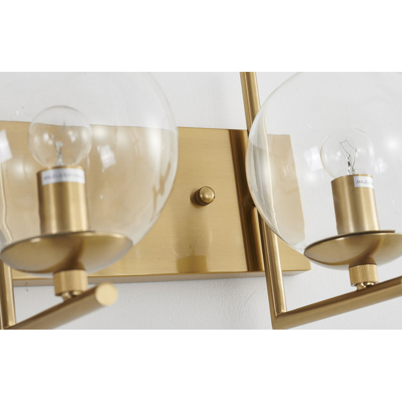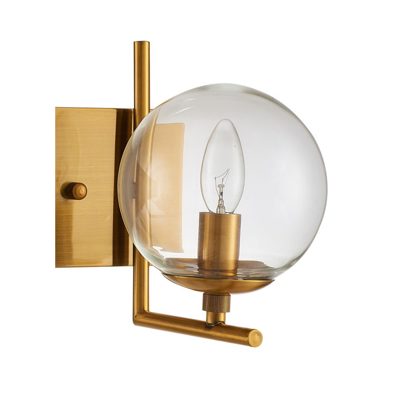 A BRONZE METAL FRAME WALL SCONCE WITH CLEAR GLASS GLOBE SHADES