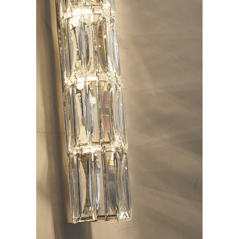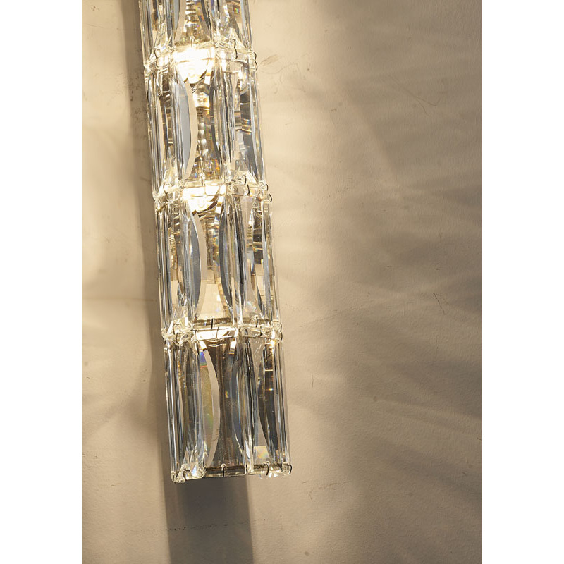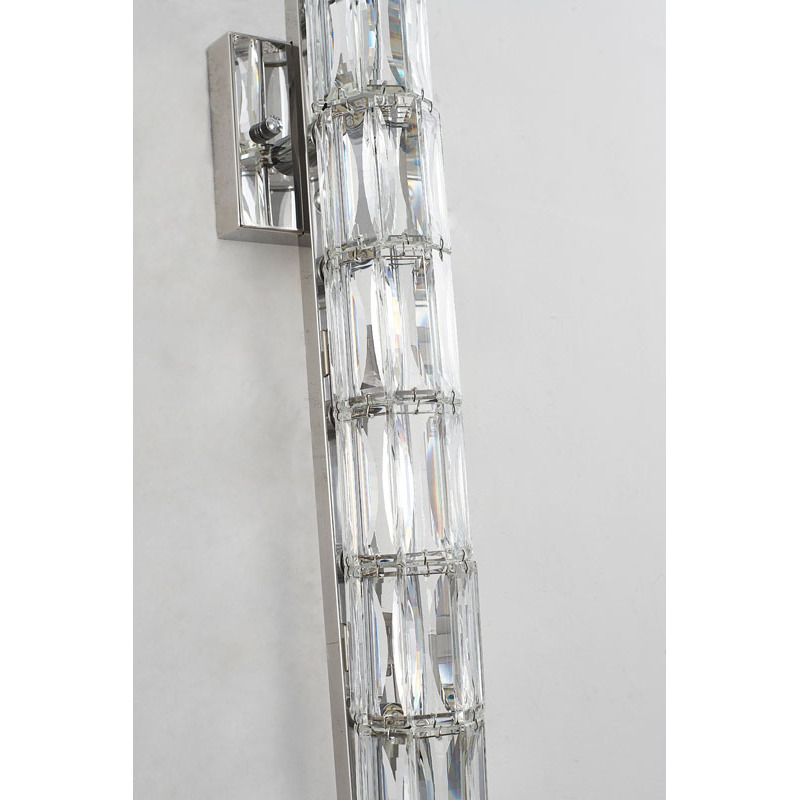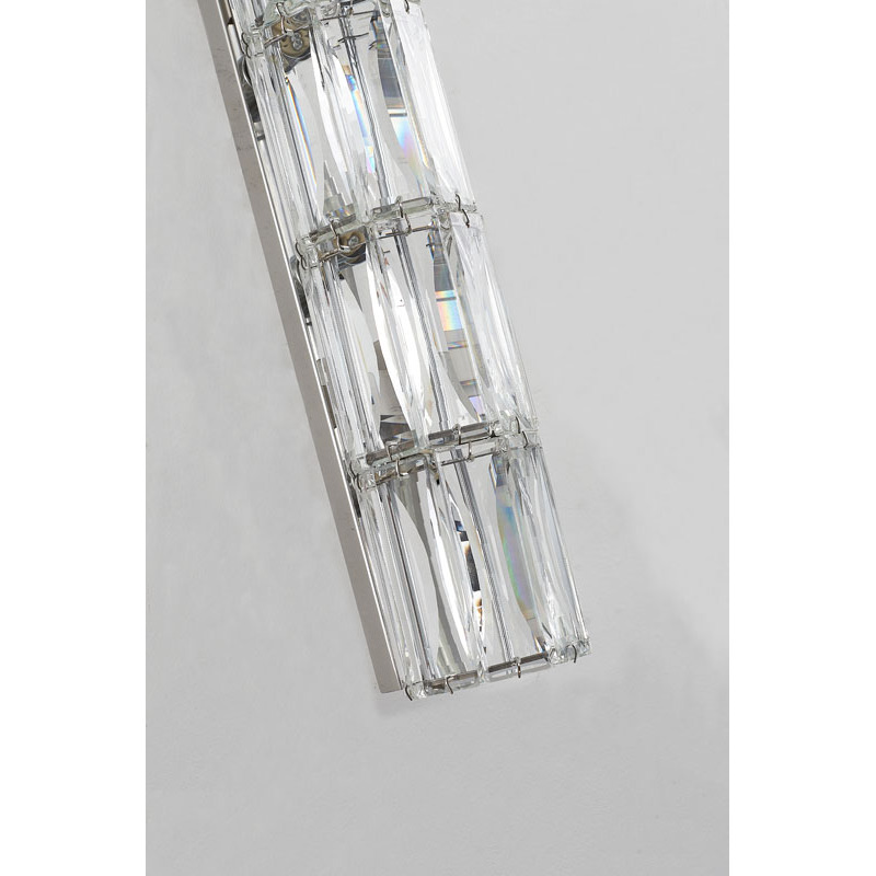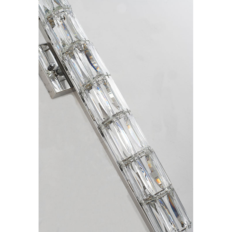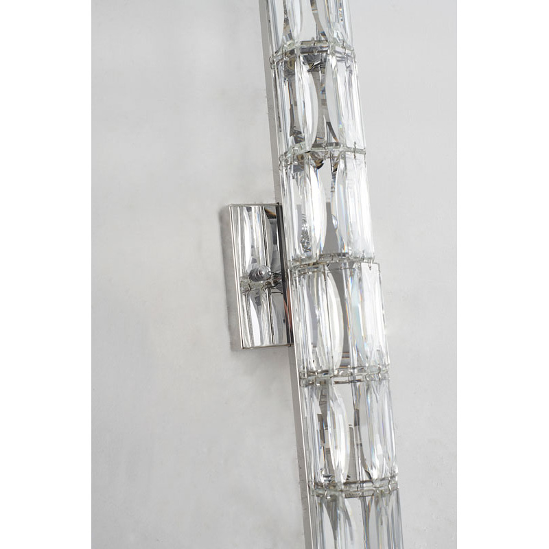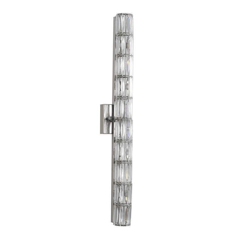 A CLEAR CRYSTAL CYLINDER WALL SCONCE WITH CHROME HARDWARE