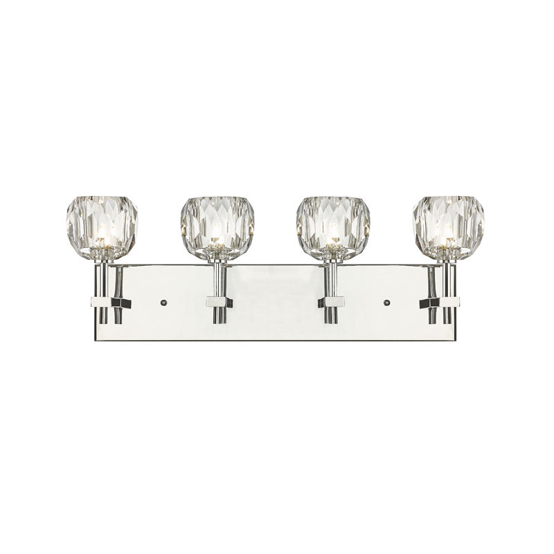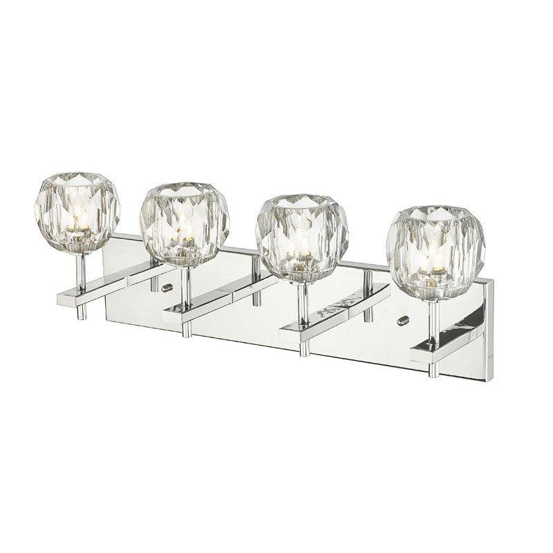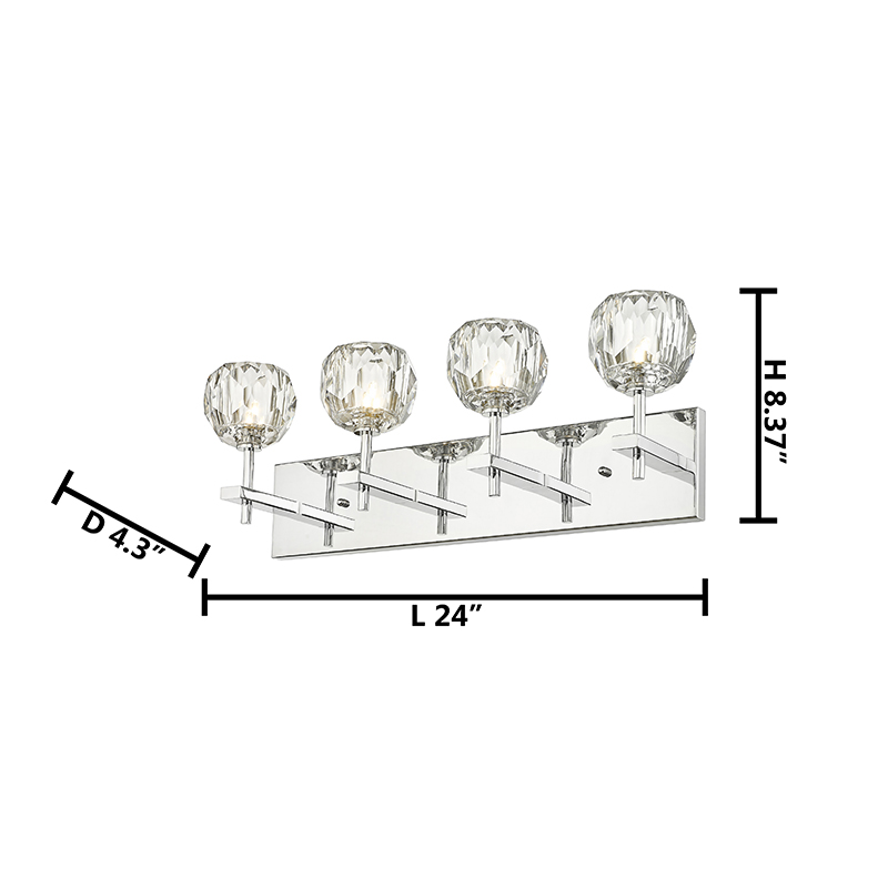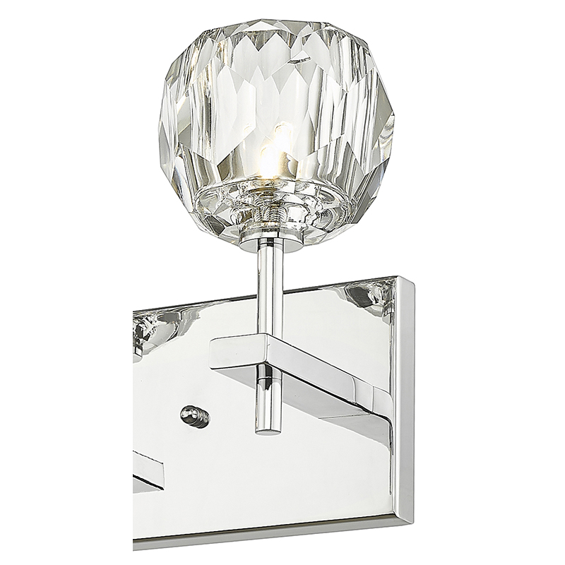 A CHROME FRAME WALL SCONCE WITH CLEAR CRYSTAL SHADES