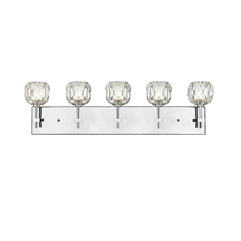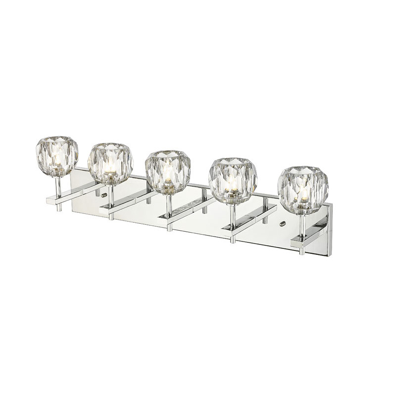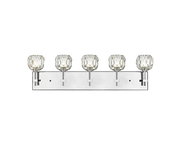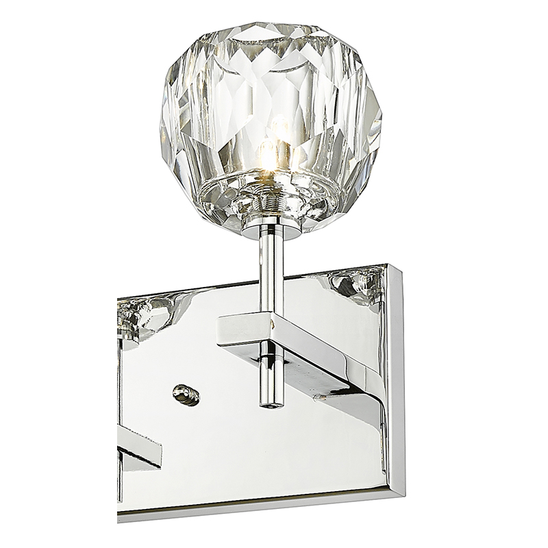 A CHROME FRAME WALL SCONCE WITH CLEAR CRYSTAL SHADES