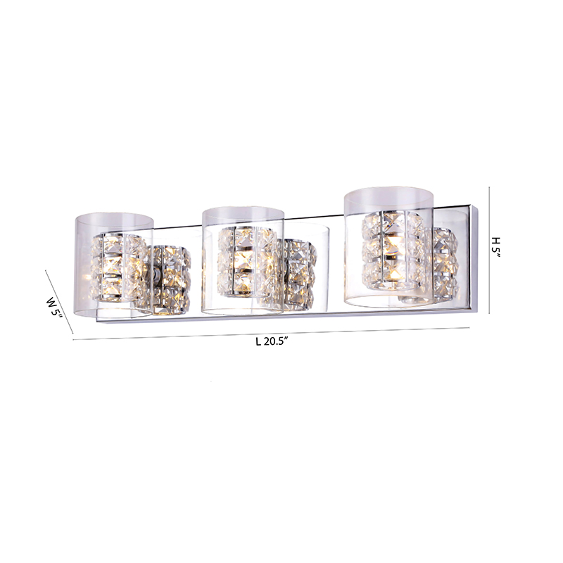 3 LIGHT CLEAR CRYSTAL WALL SCONCE WITH GLASS COVER AND CHROME HARDWARE
