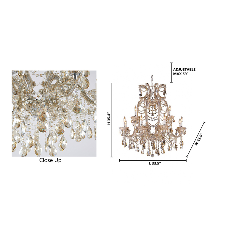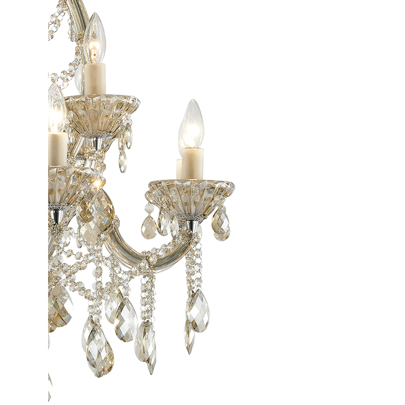 A TWO TIER CHAMPAGNE CRYSTAL CHANDELIER WITH CHROME HARDWARE