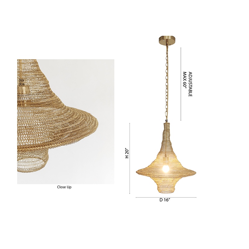 A GOLD POWDER COAT CHAIN BASKET LIGHT