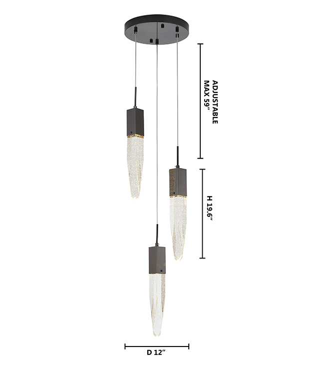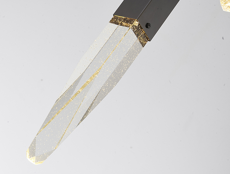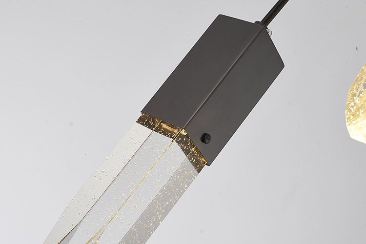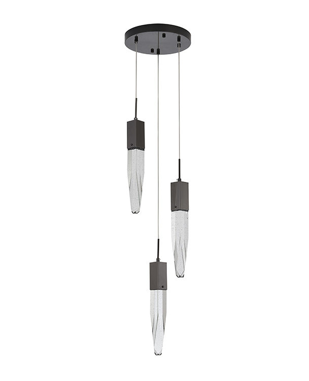 A BLACK GUN METAL FRAME CHANDELIER WITH CLEAR BUBBLE CRYSTAL PENDANTS