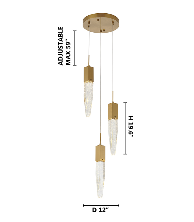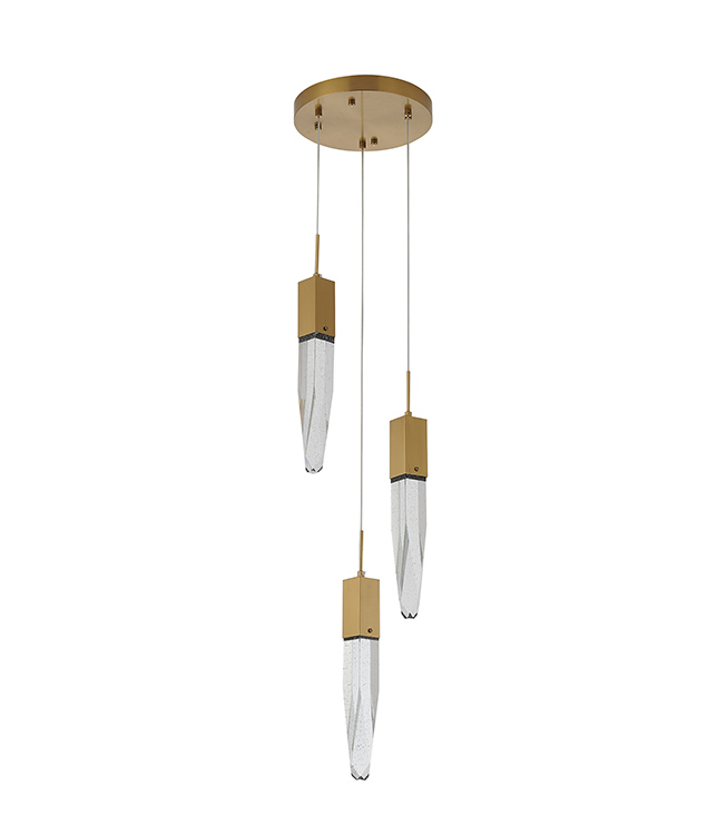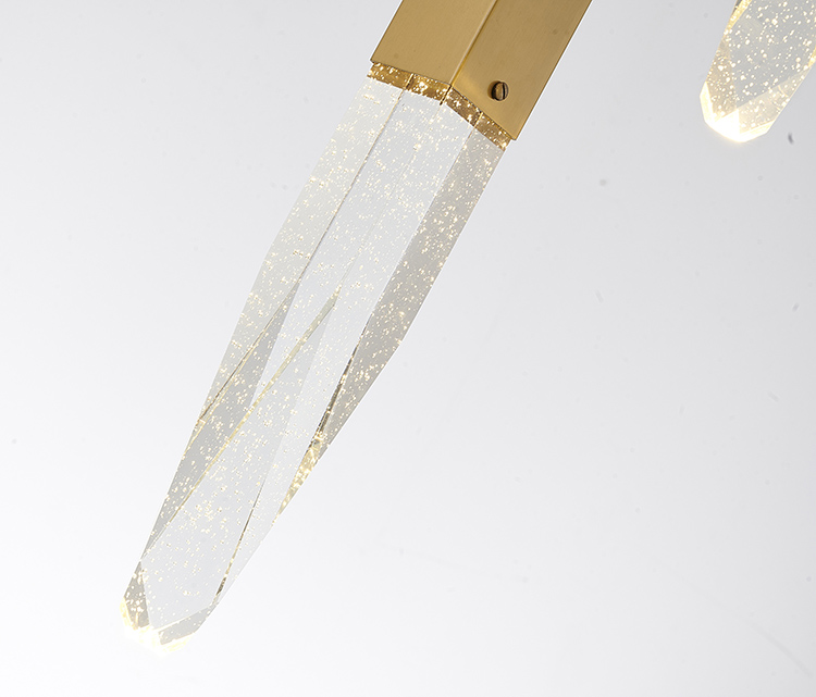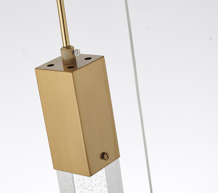 A GOLD HAIRLINED FRAME CHANDELIER WITH CLEAR BUBBLE CRYSTAL PENDANTS