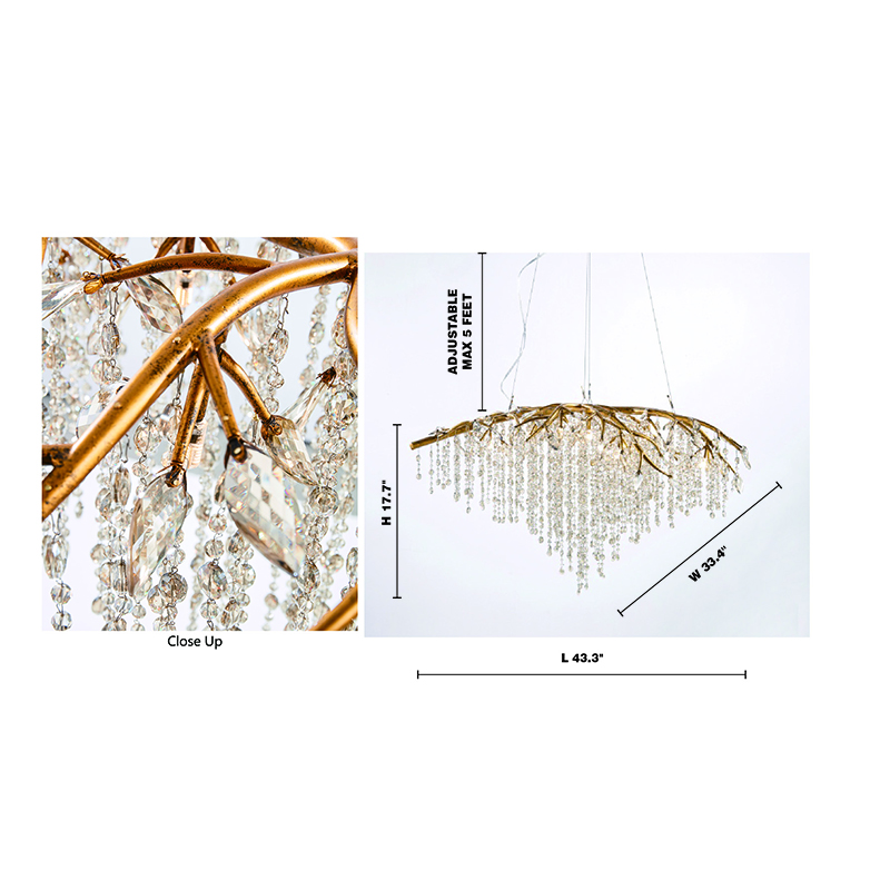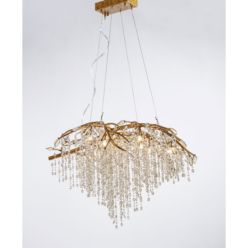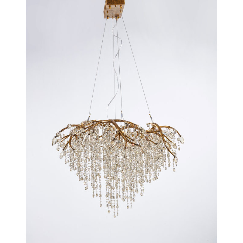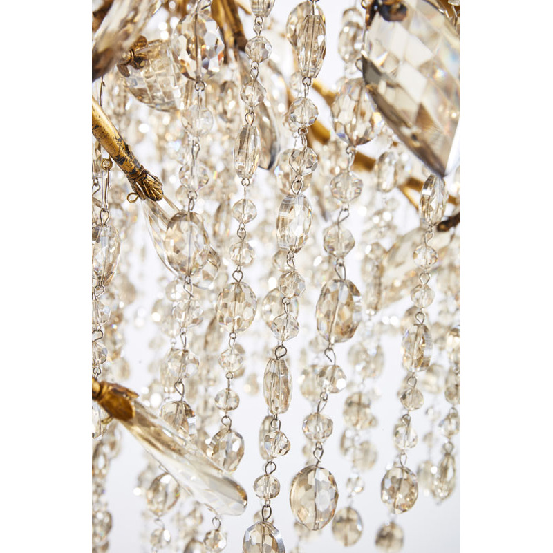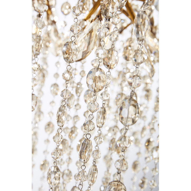 A GOLD BRANCH CHANDELIER WITH CHAMPAGNE BEADED CRYSTAL STRANDS AND CRYSTAL BRANCHES