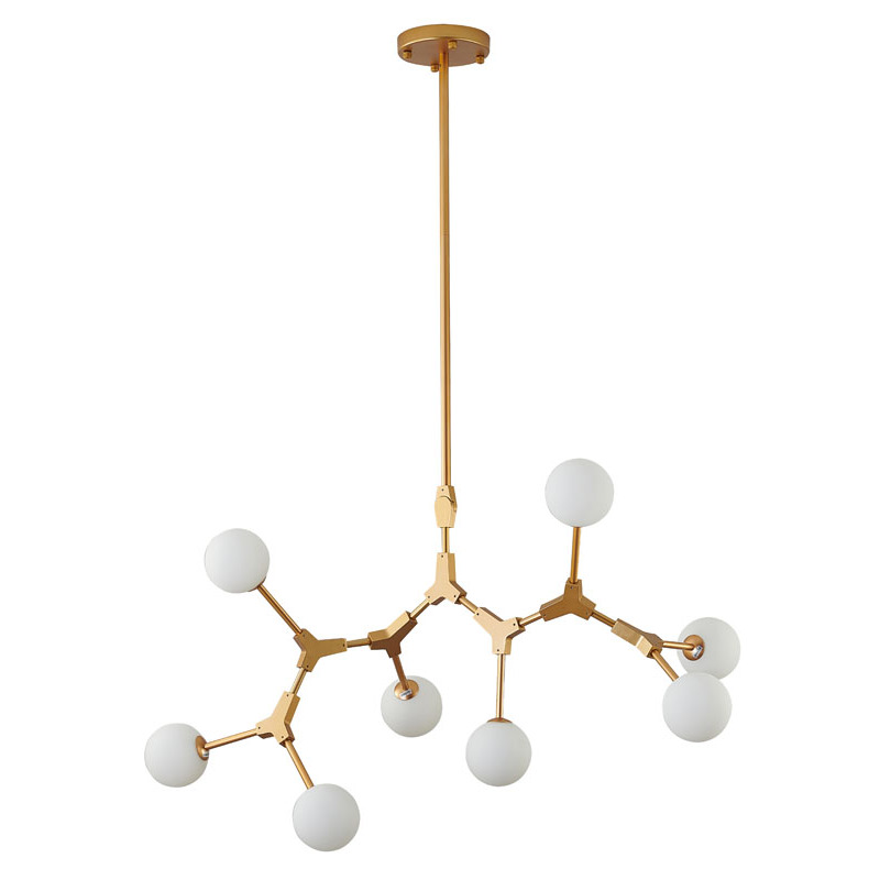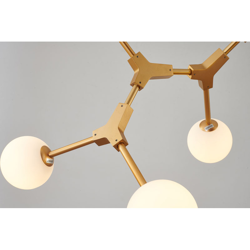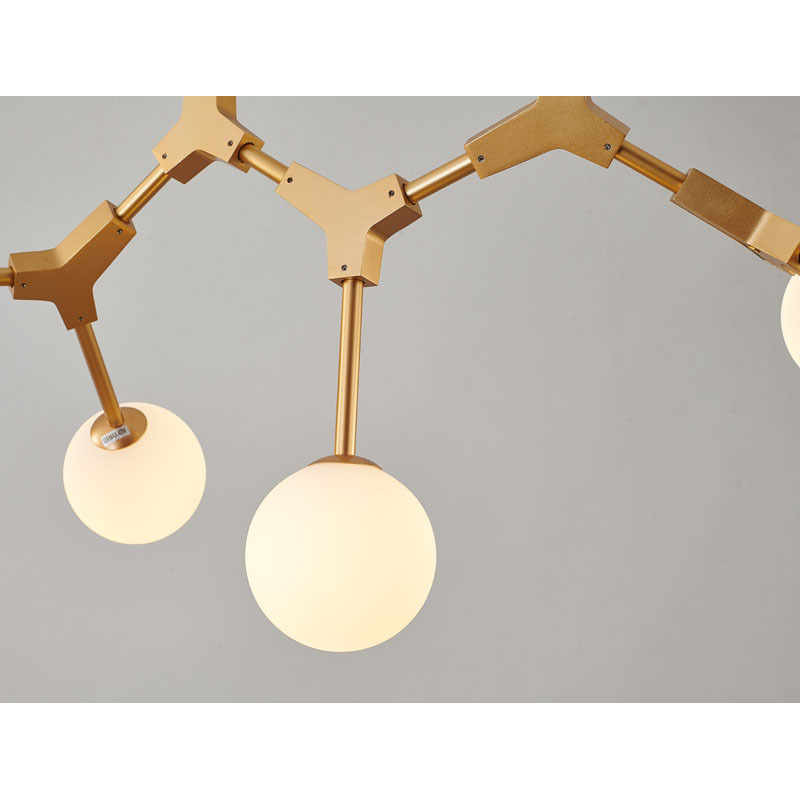 A GOLD METAL FRAME CEILING FIXTURE WITH MILK WHITE GLASS SHADES