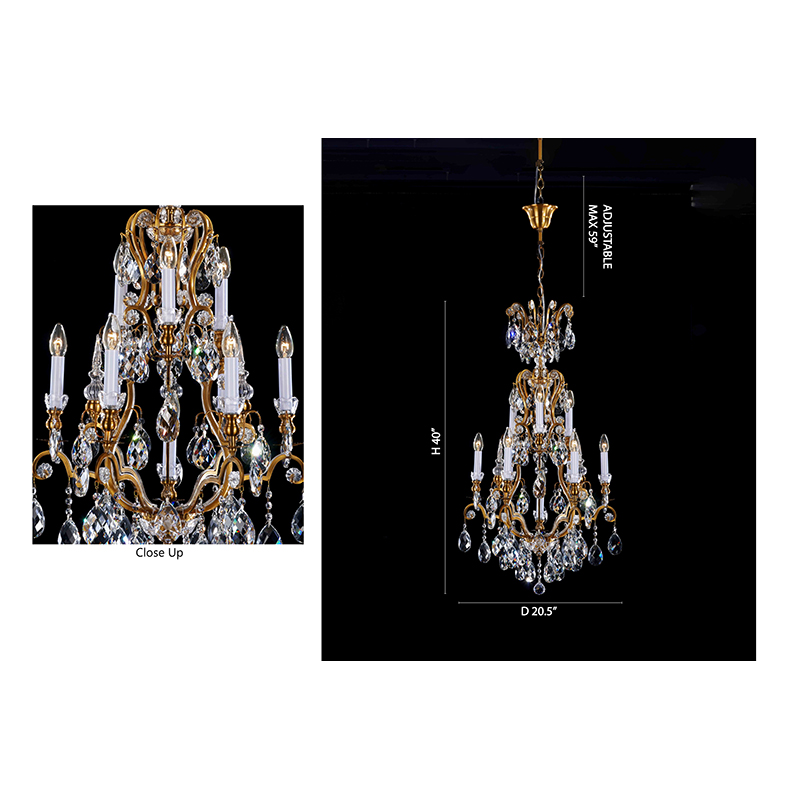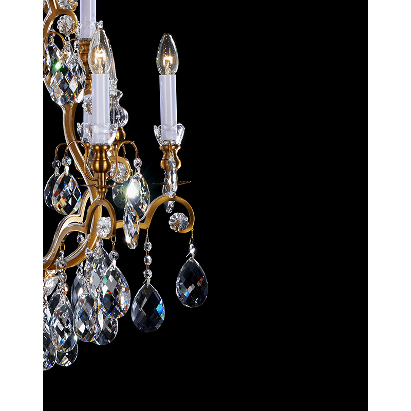 AN ANTIQUE BRASS FRAME WITH CLEAR CRYSTAL CHANDELIER