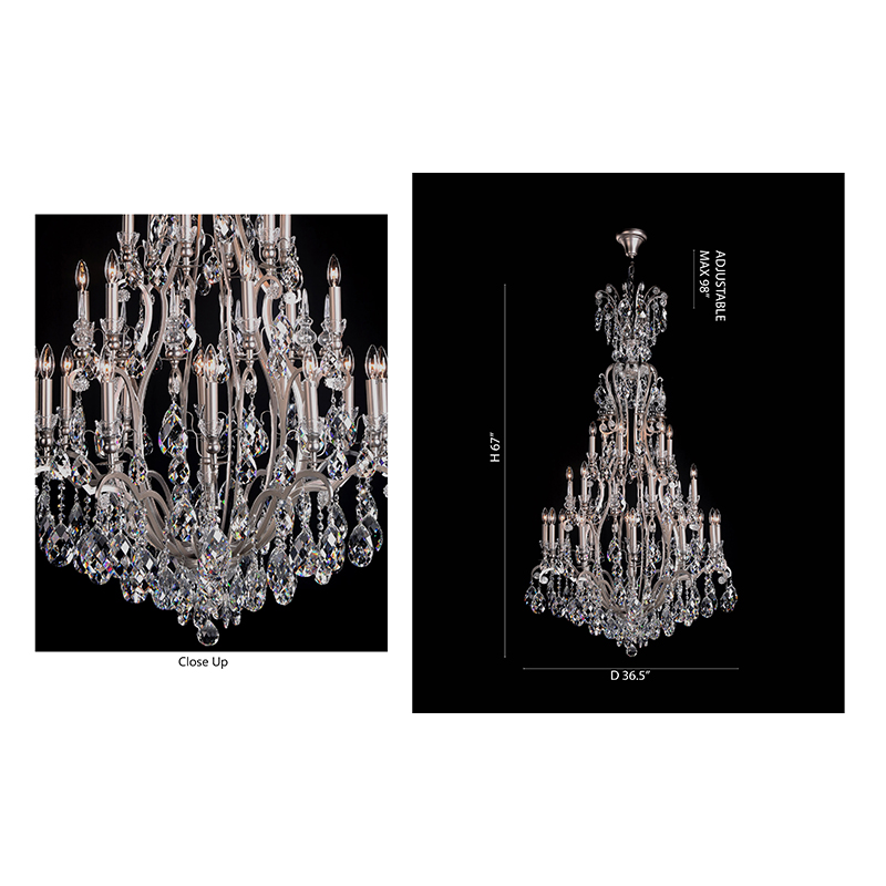 CLEAR CRYSTAL CHANDELIER WITH A PEWTER FRAME