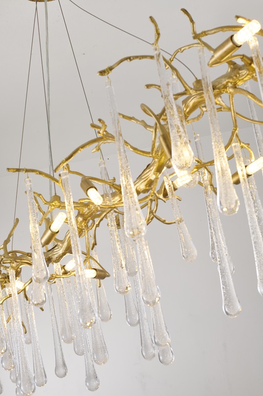 BRASS ALUMINUM CHANDELIER WITH CLEAR GLASS DROP