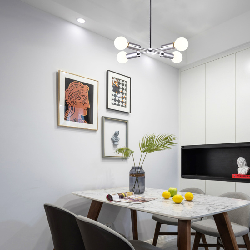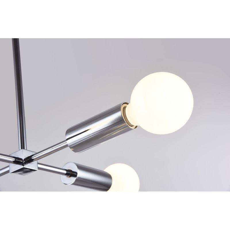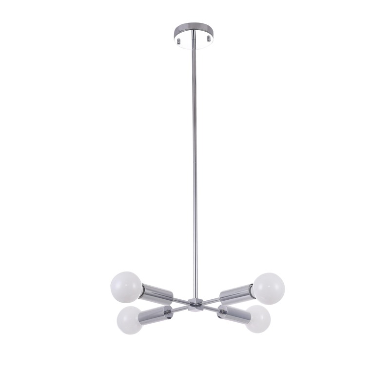 A CHROME FRAME CEILING FIXTURE WITH FOUR ARMS & VISIBLE BULBS