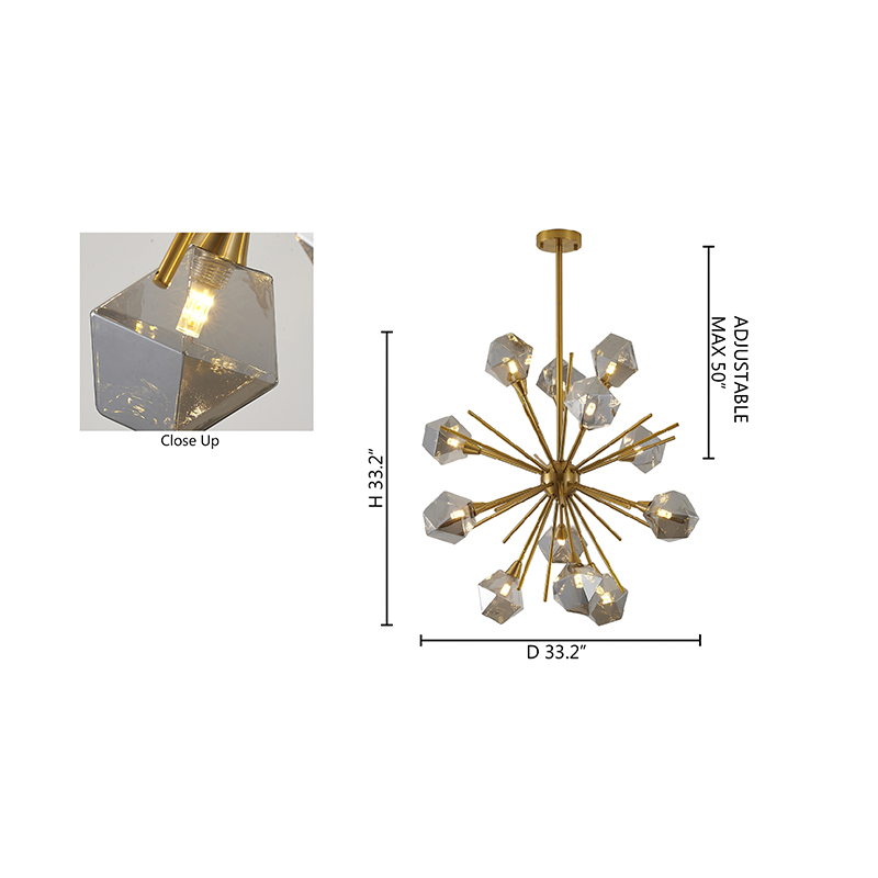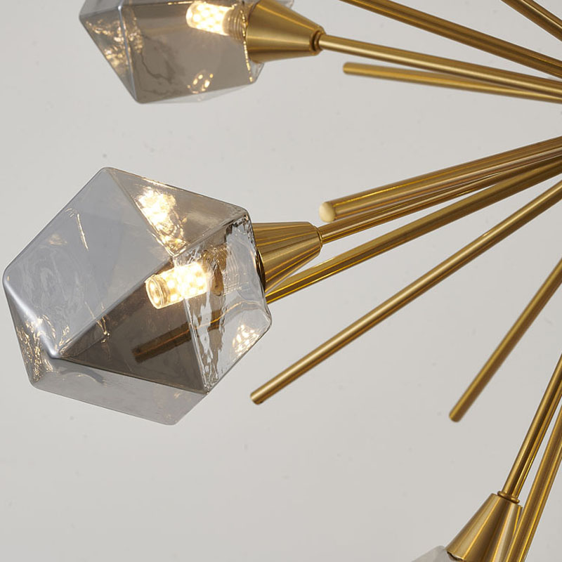 A GOLD SPUTNIK FRAME CHANDELIER WITH SMOKE GLASS SHADES