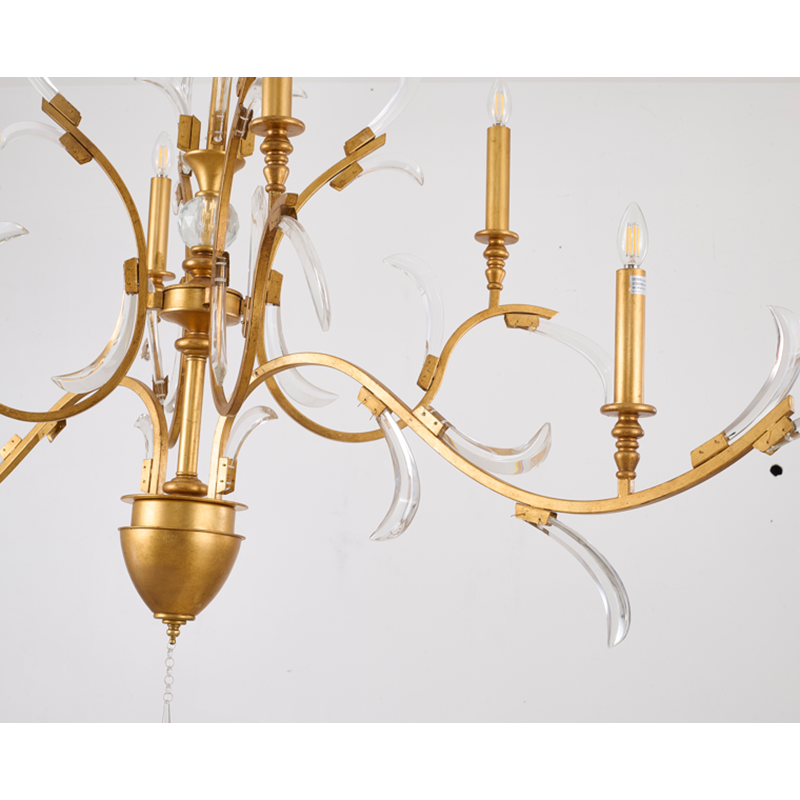 GOLD LEAF METAL CHANDELIER WITH CLEAR CRYSTALS