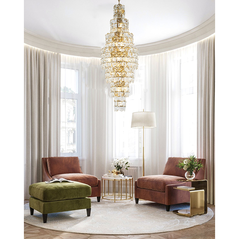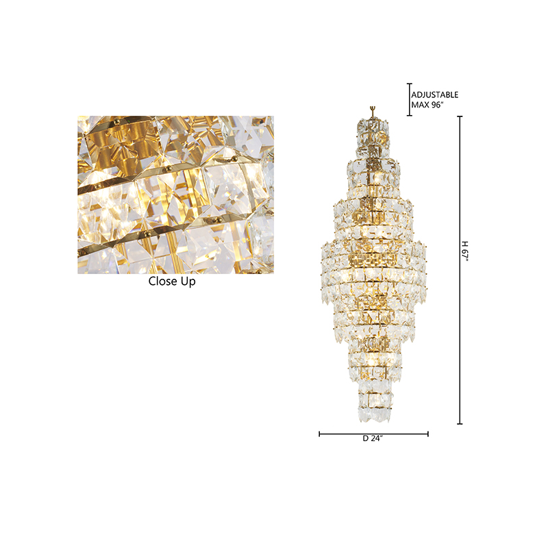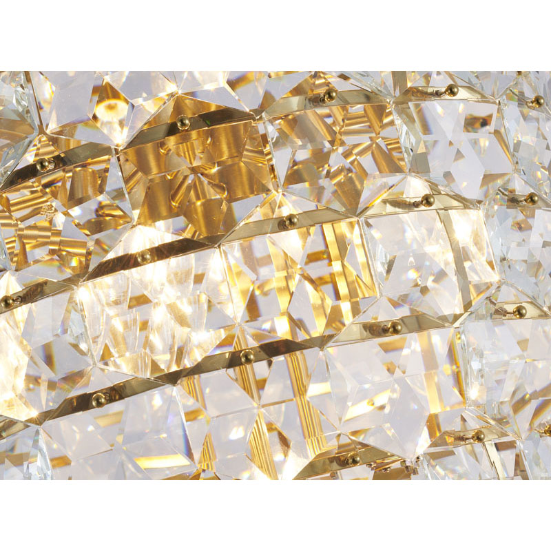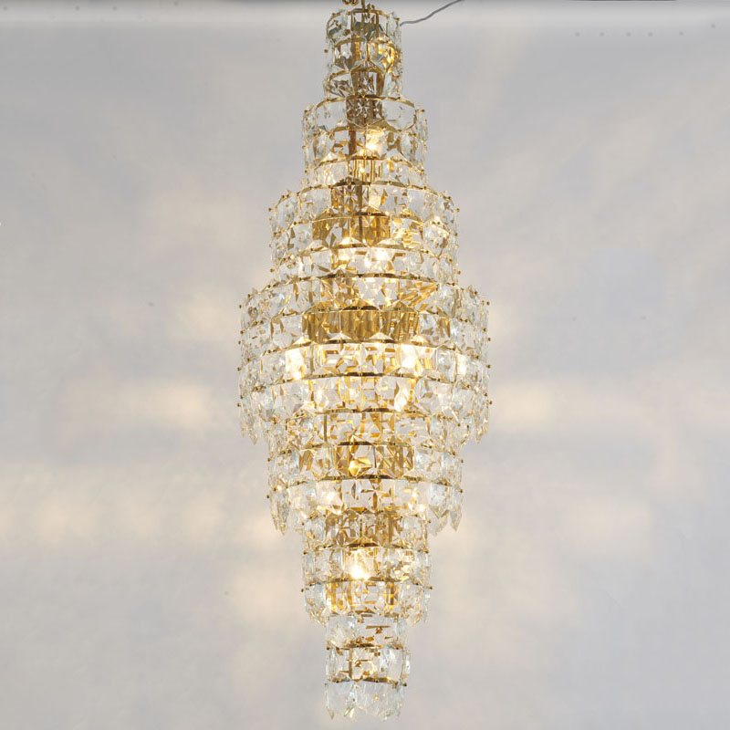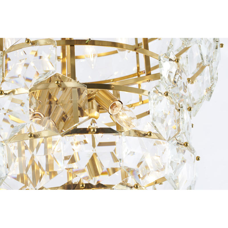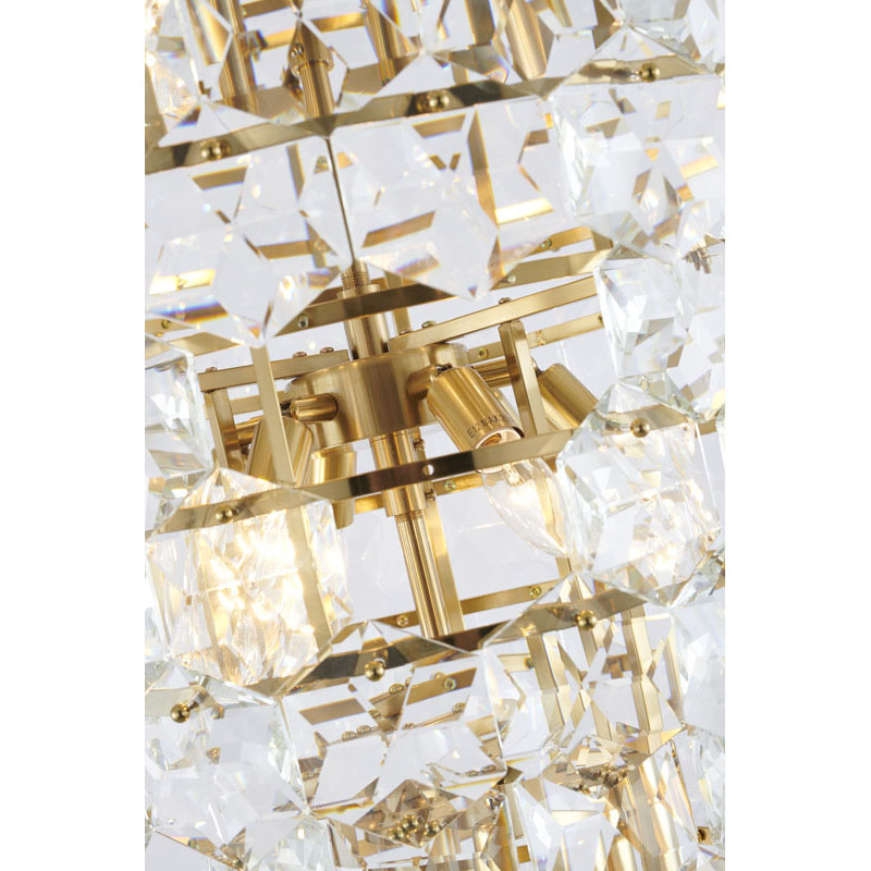 A SEVEN TIER BRASS FRAME CHANDELIER WITH CLEAR HANGING CRYSTALS