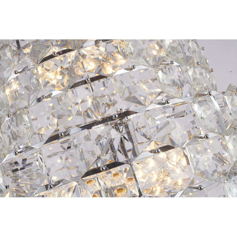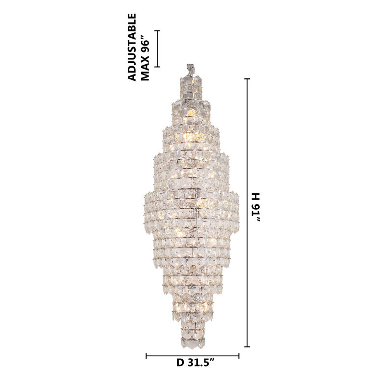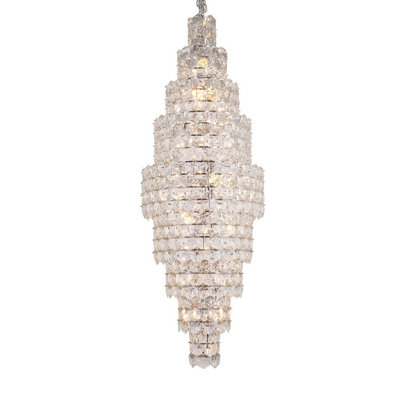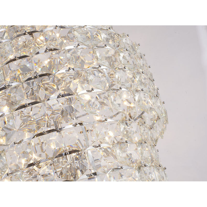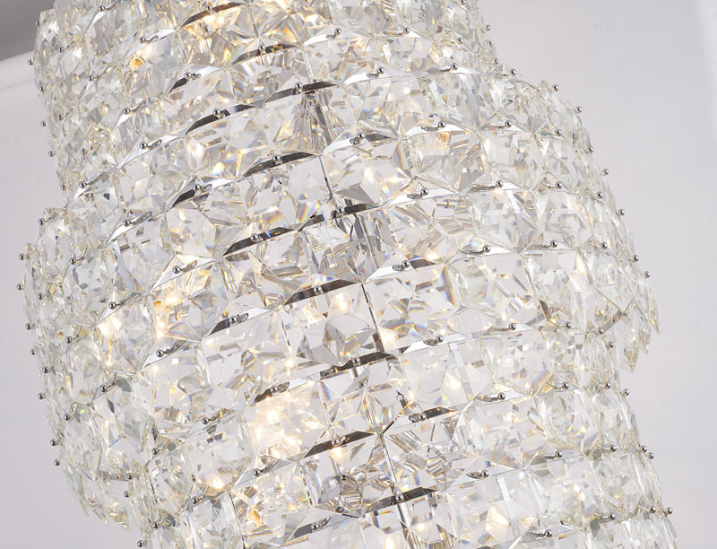 A NINE TIER CHROME FRAME CHANDELIER WITH CLEAR HANGING CRYSTALS