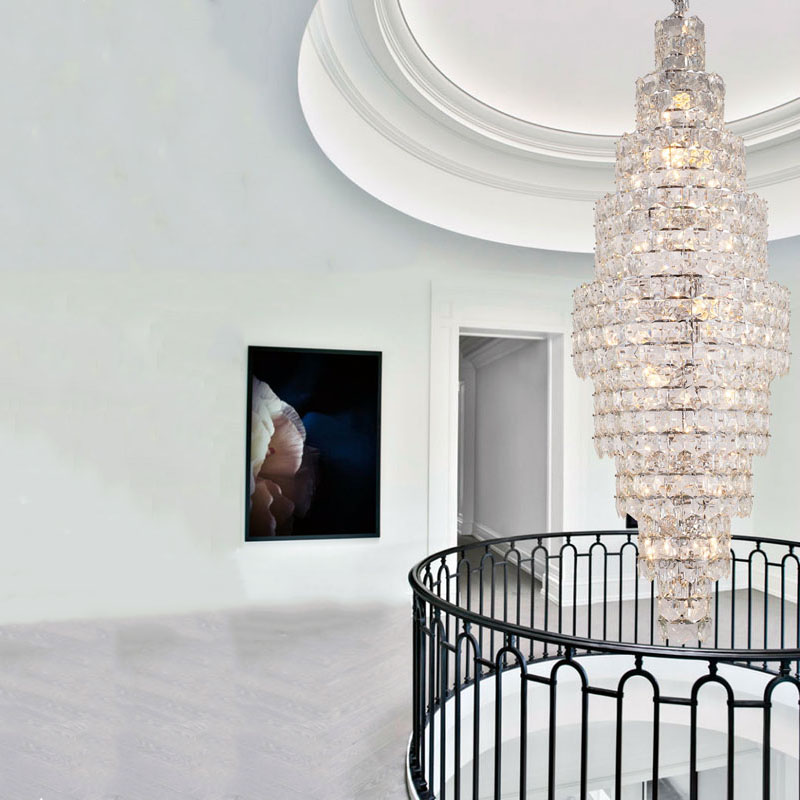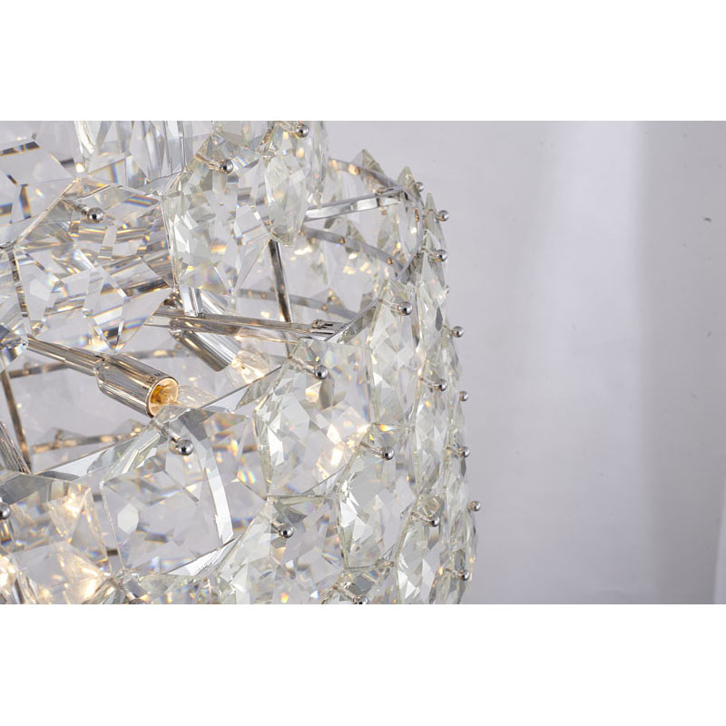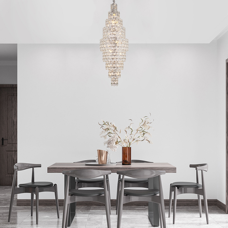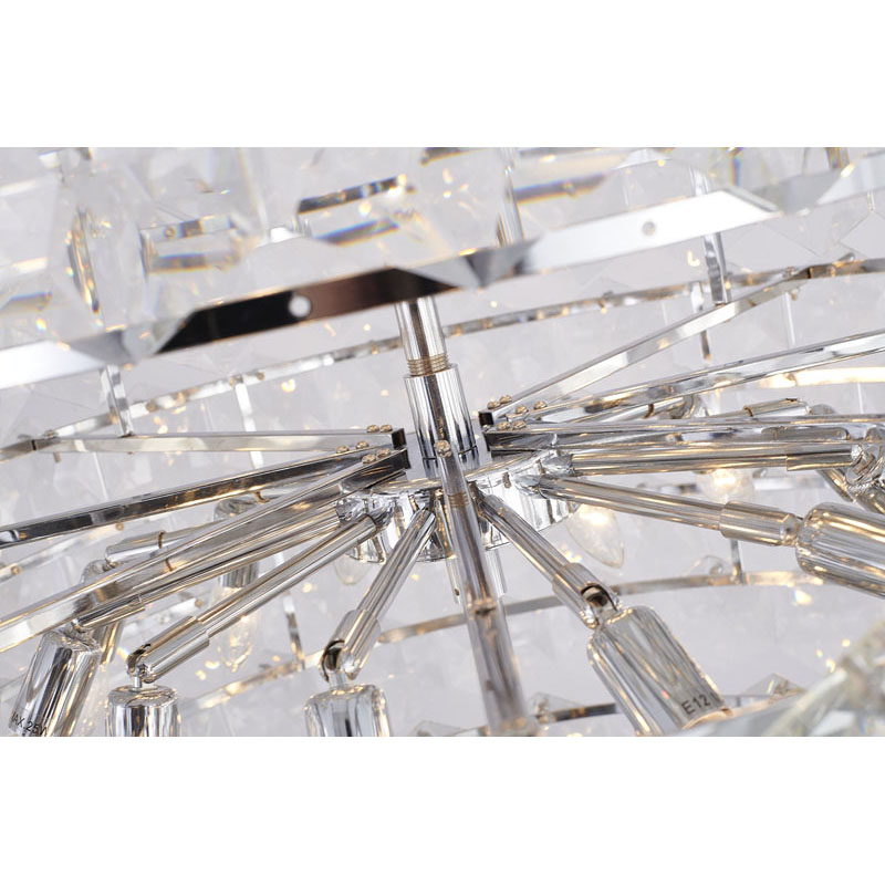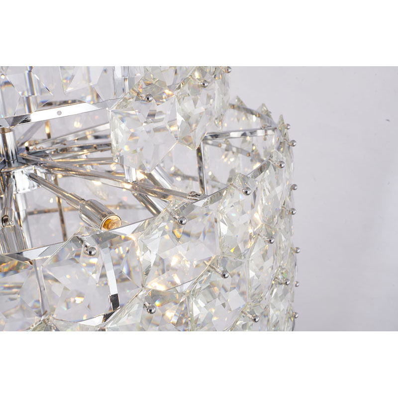 A NINE TIER CHROME FRAME CHANDELIER WITH CLEAR HANGING CRYSTALS