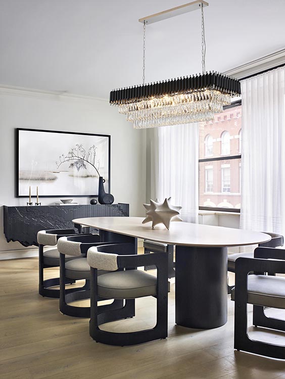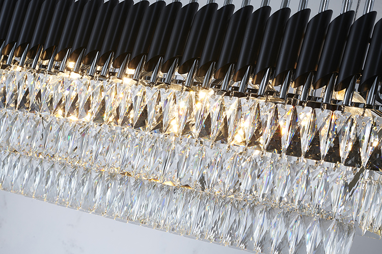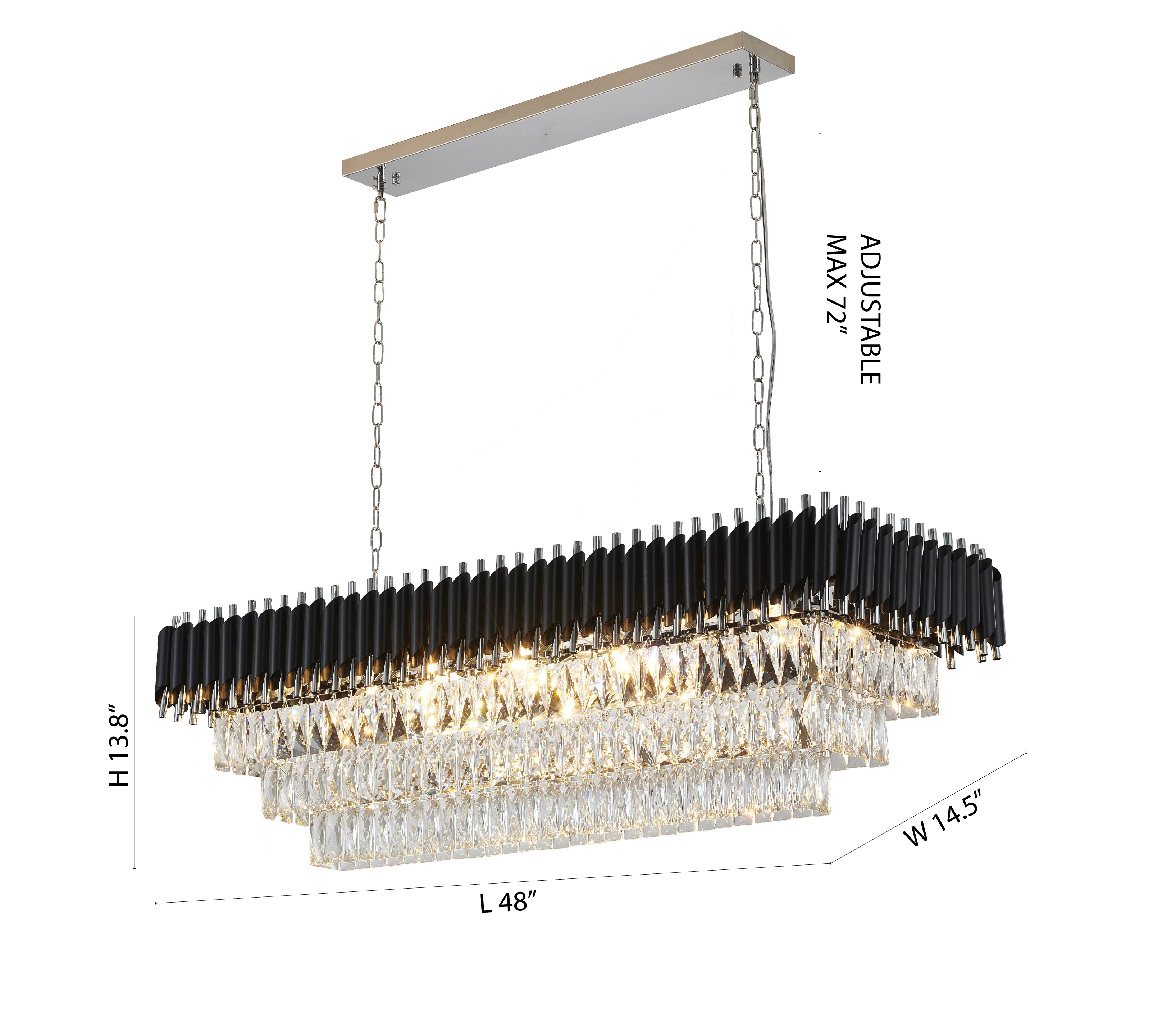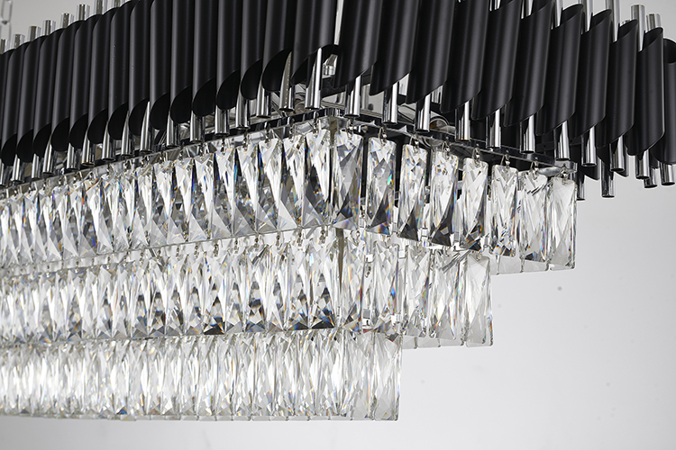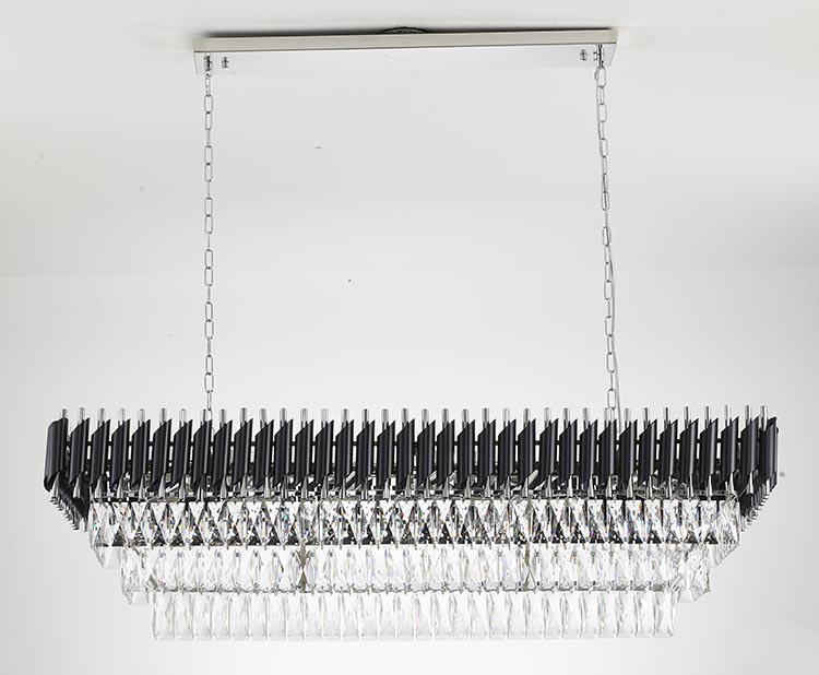 A BLACK & CHROME RECTANGULAR FRAME CHANDELIER WITH CLEAR HANGING CRYSTALS