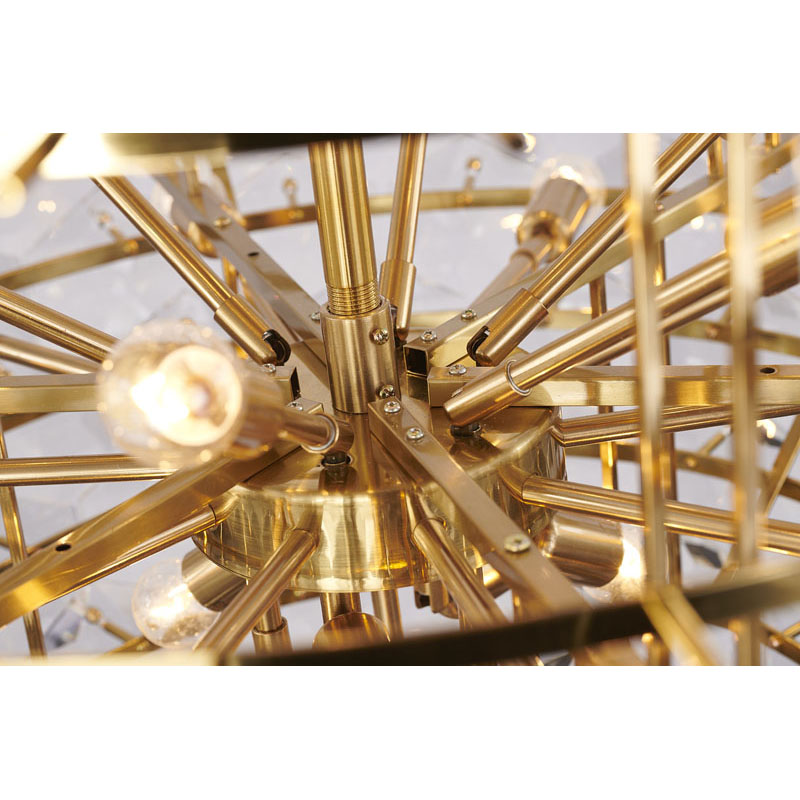 A BRASS FRAME CHANDELIER WITH CLEAR HANGING CRYSTALS