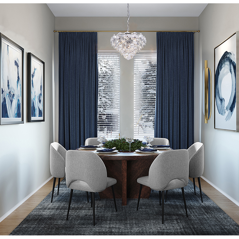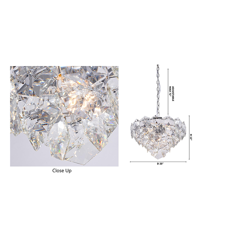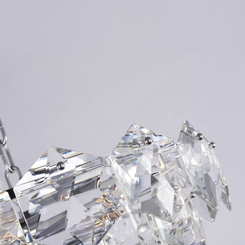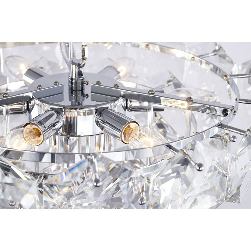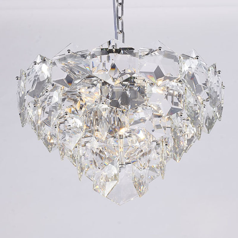 A CHROME FRAME CHANDELIER WITH CLEAR HANGING CRYSTALS