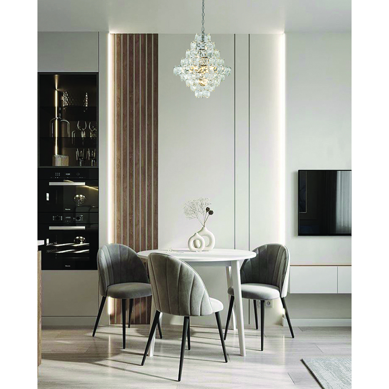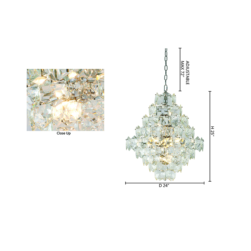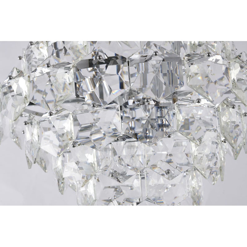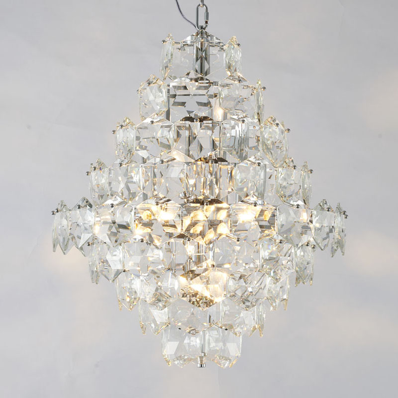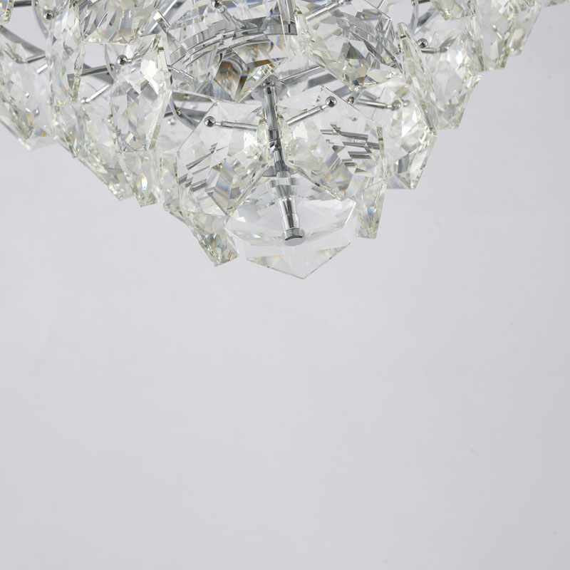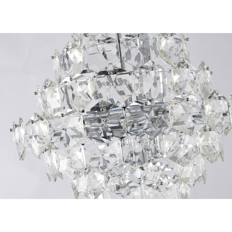 A CLEAR CRYSTAL CHANDELIER WITH CHROME HARDWARE