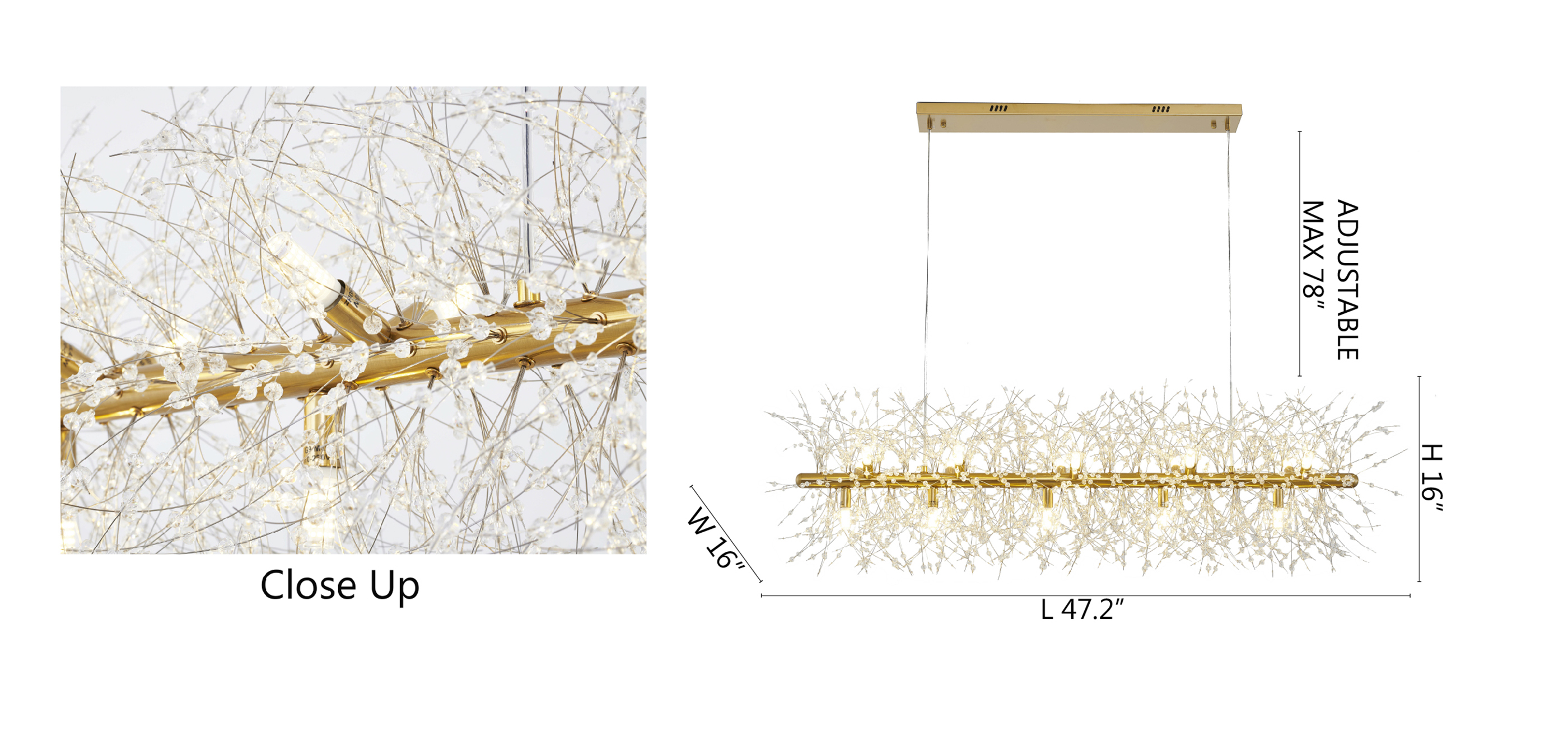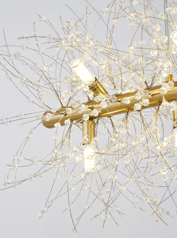 A BRASS LINEAR FRAME CHANDELIER WITH CLEAR CRYSTAL SPIKE ACCENTS