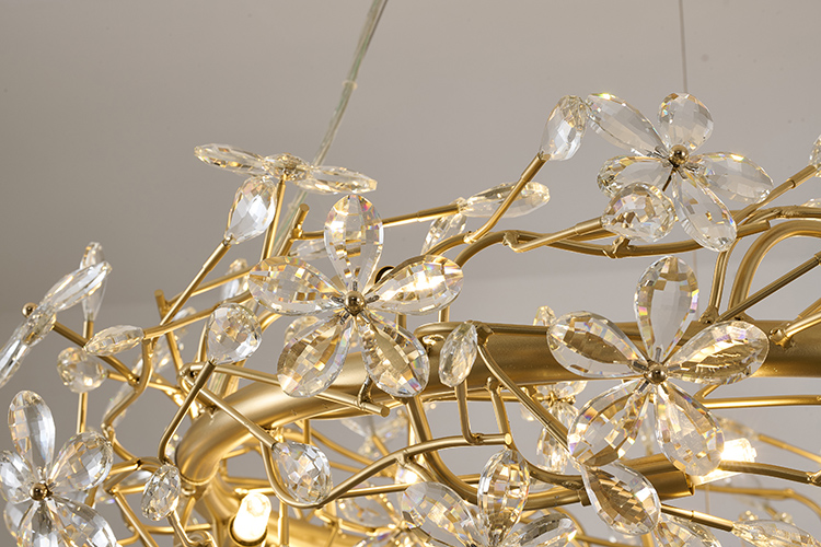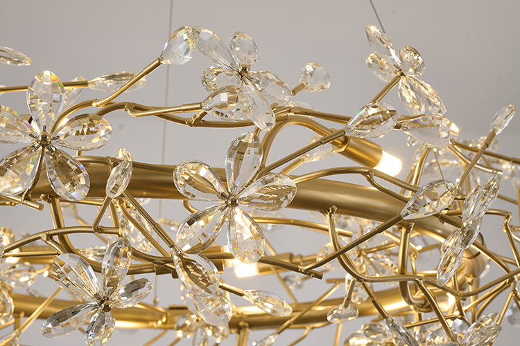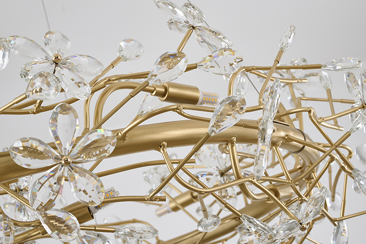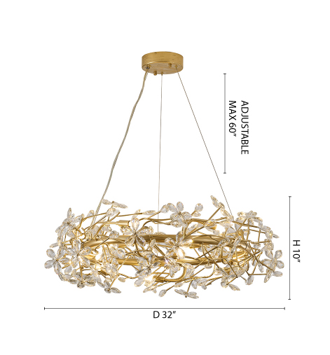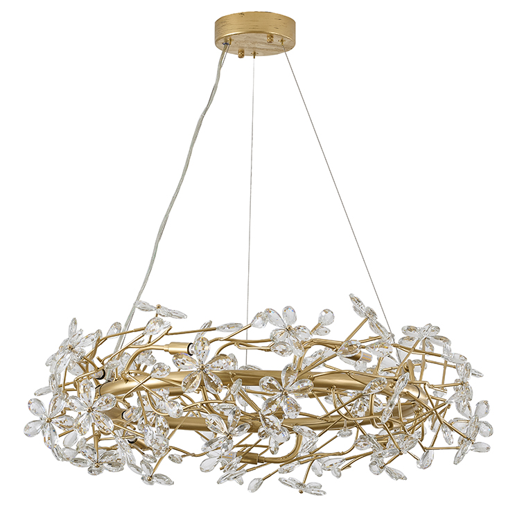 GOLD ALUMINUM CHANDELIER WITH CLEAR CRYSTALS