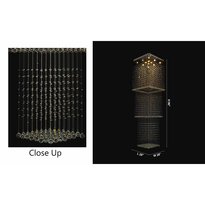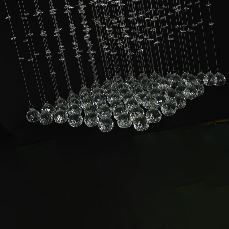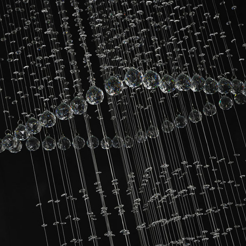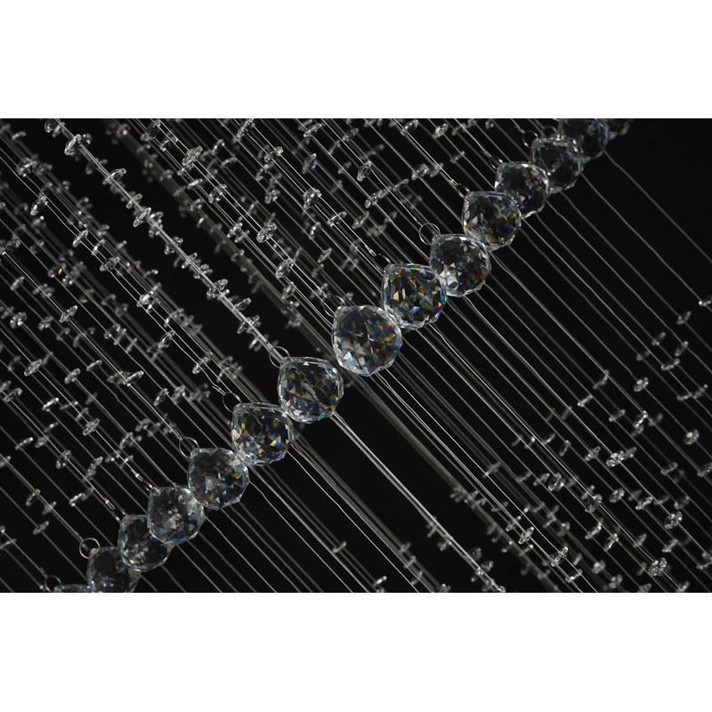A CHROME FLUSHED CHANDELIER WITH CLEAR HANGING CRYSTAL BEADS & BALLS