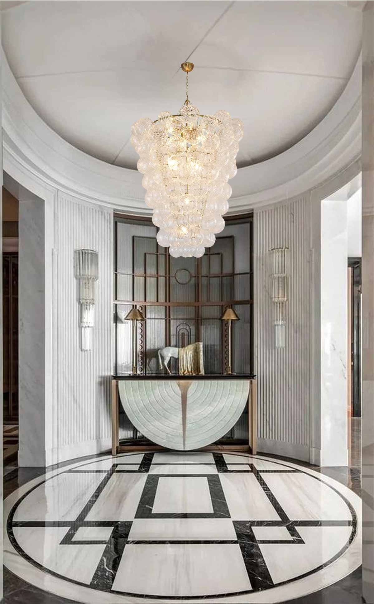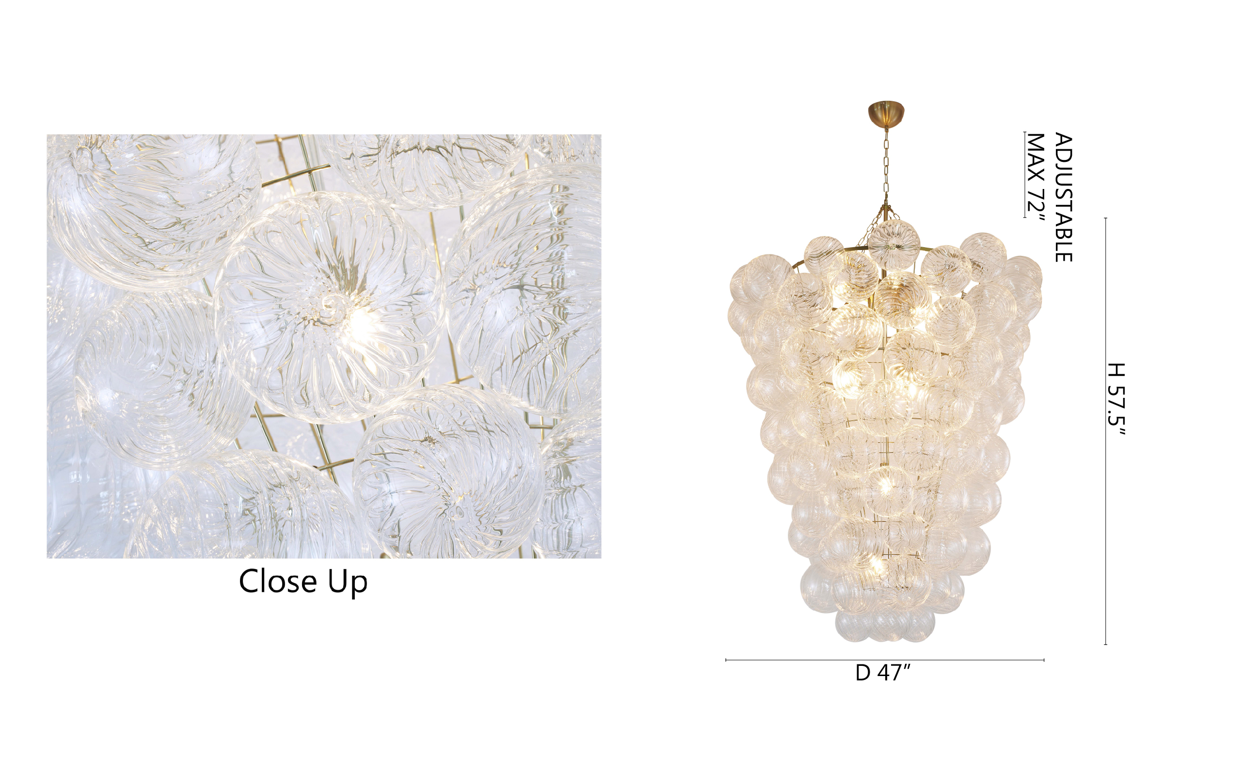 A BRASS FRAME CHANDELIER WITH CLEAR SWIRL GLASS SHADES