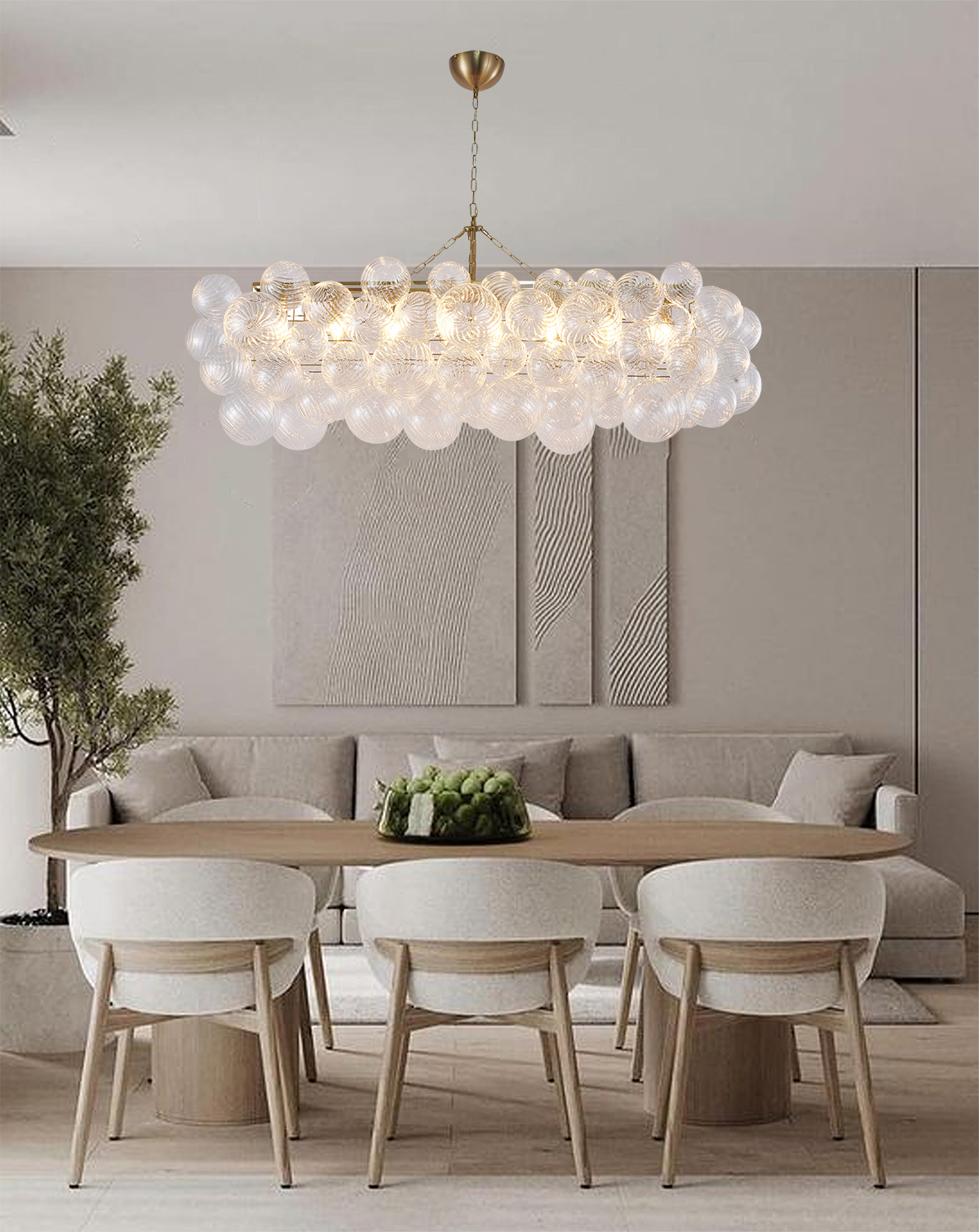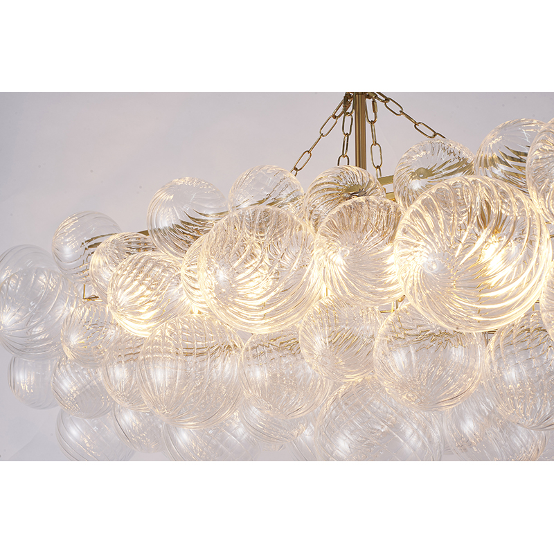 A BRASS FRAME CHANDELIER WITH CLEAR GLASS SWIRL SHADES