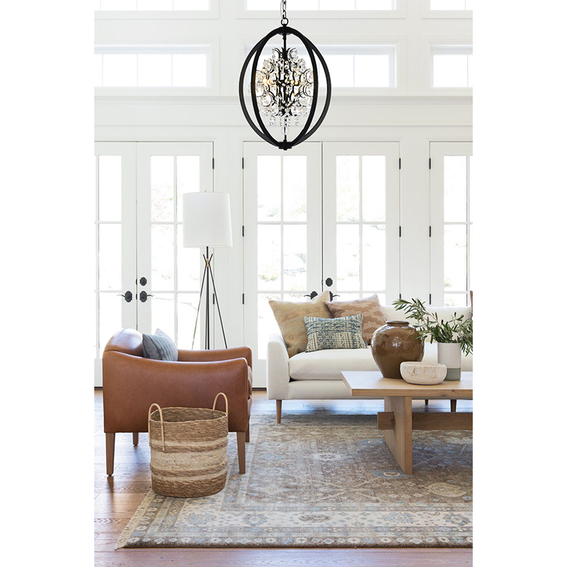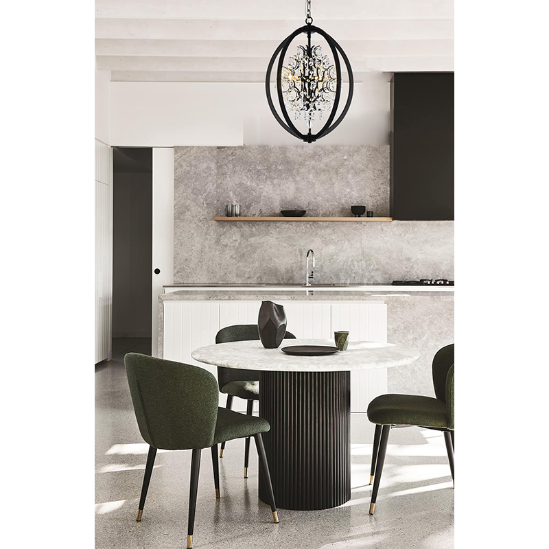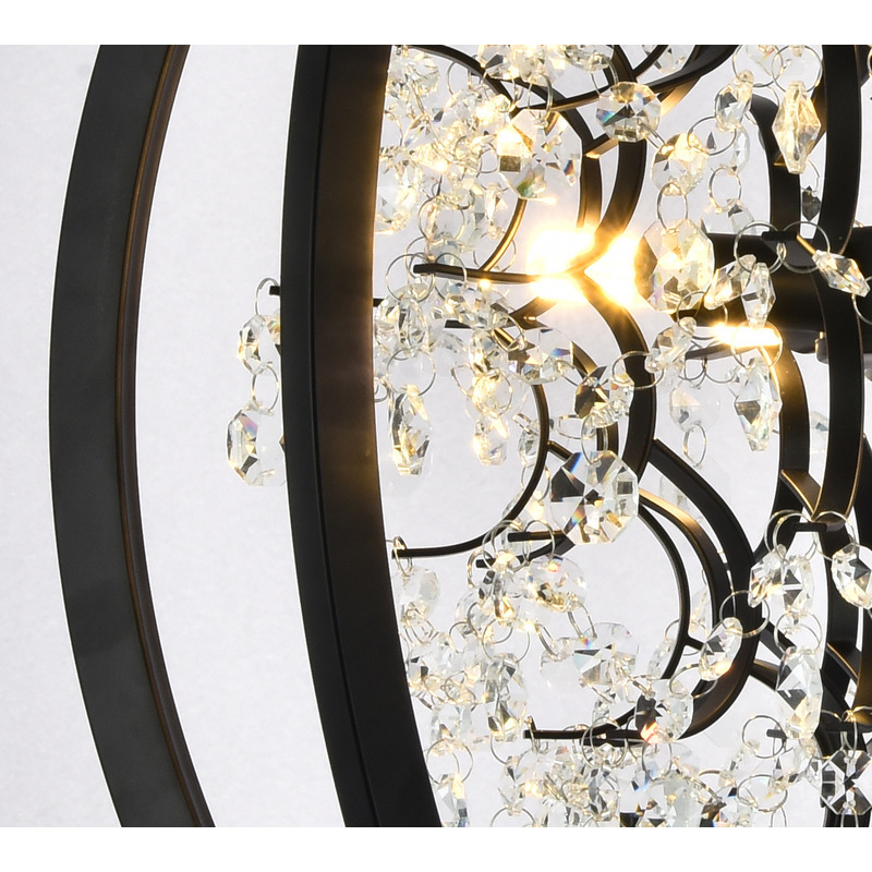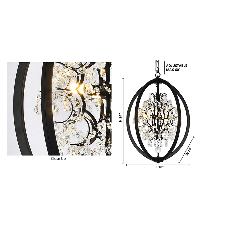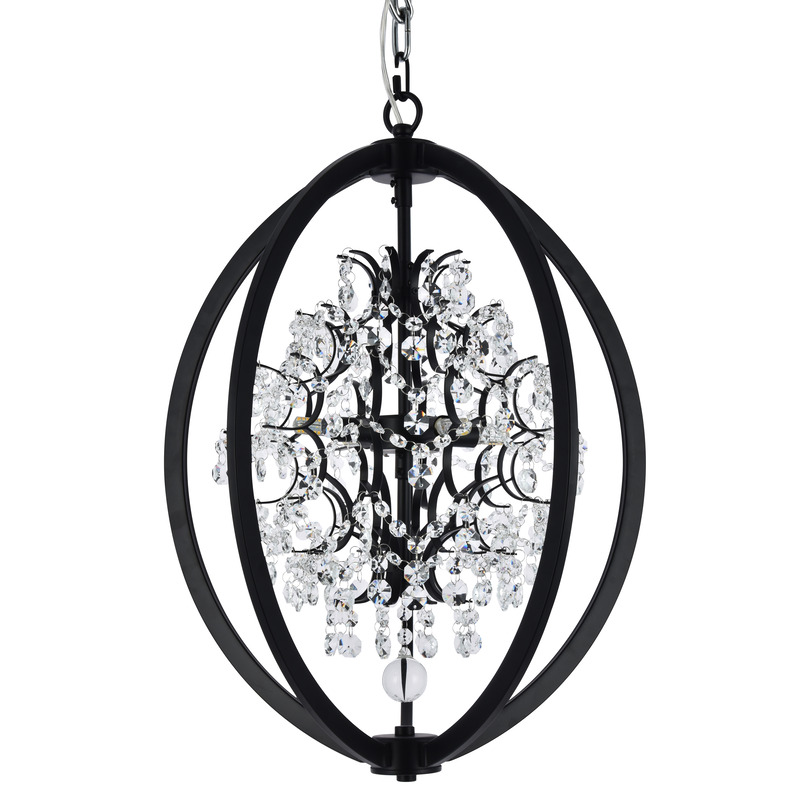 A MATTE BLACK CAGE CHANDELIER WITH CLEAR HANGING BEADED CRYSTALS