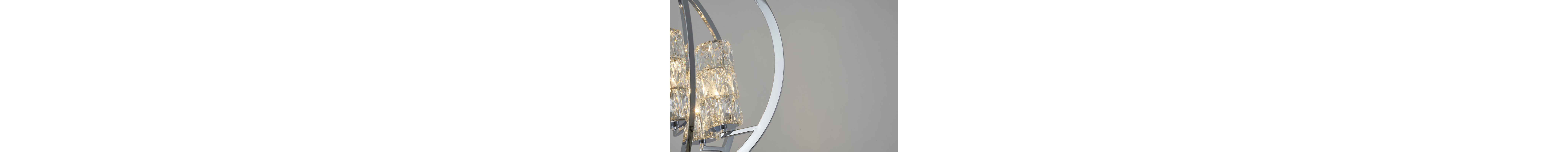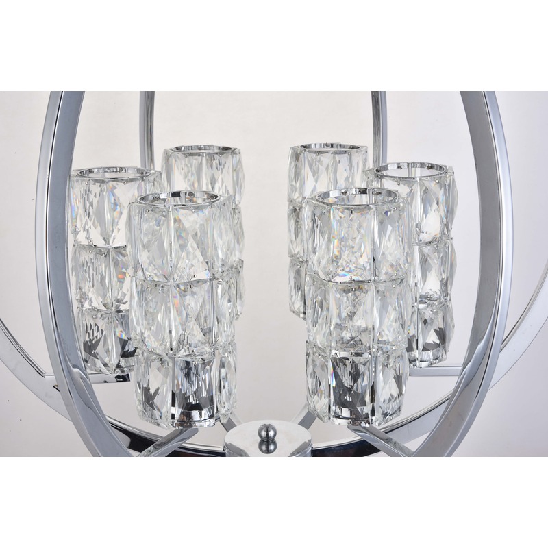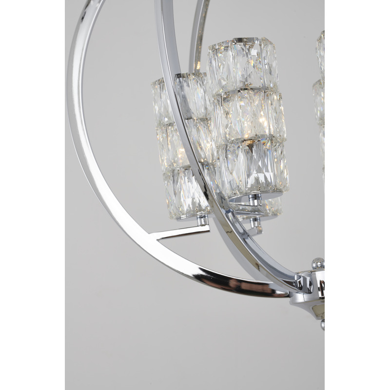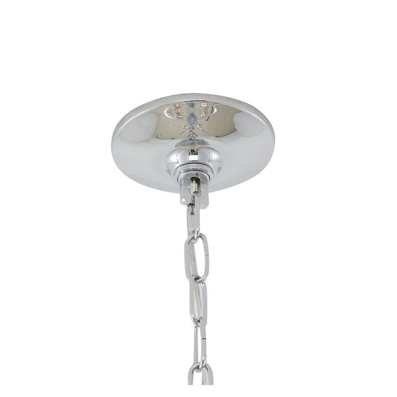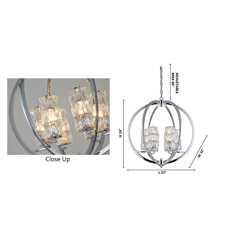 A CHROME ORB FRAME CHANDELIER WITH CLEAR CRYSTAL SHADES