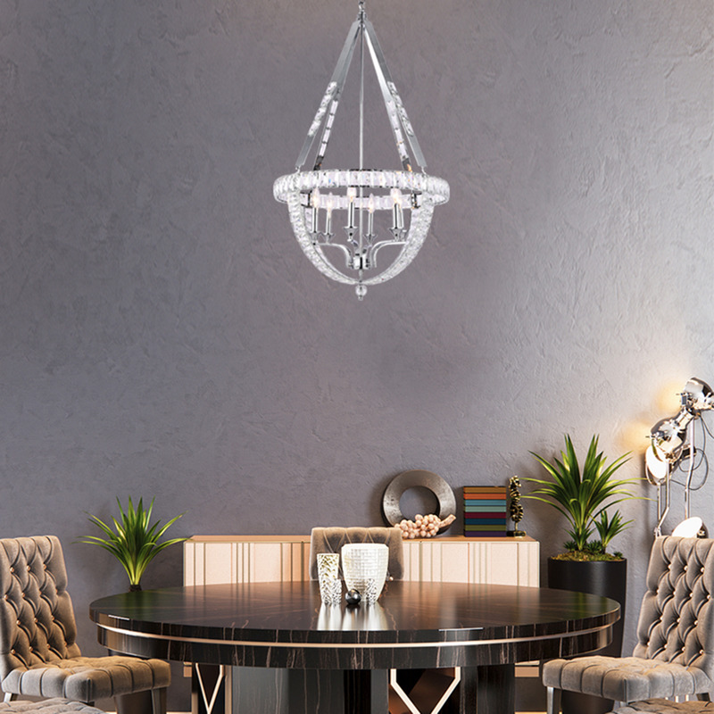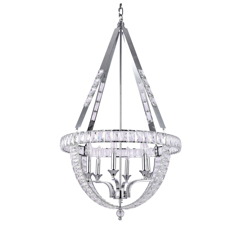 CLEAR CRYSTAL BASKET CHANDELIER WITH A CHROME FRAME