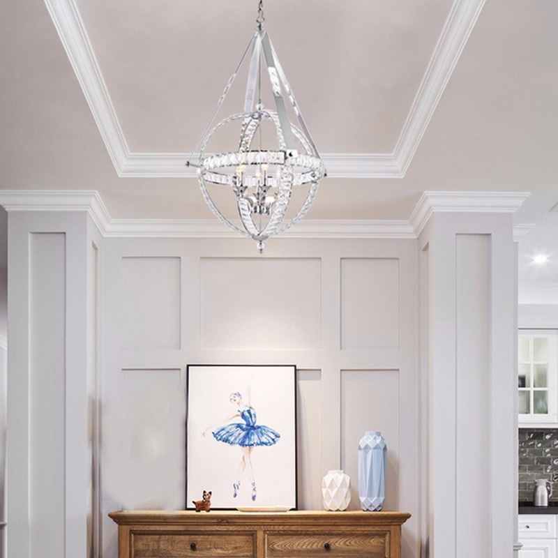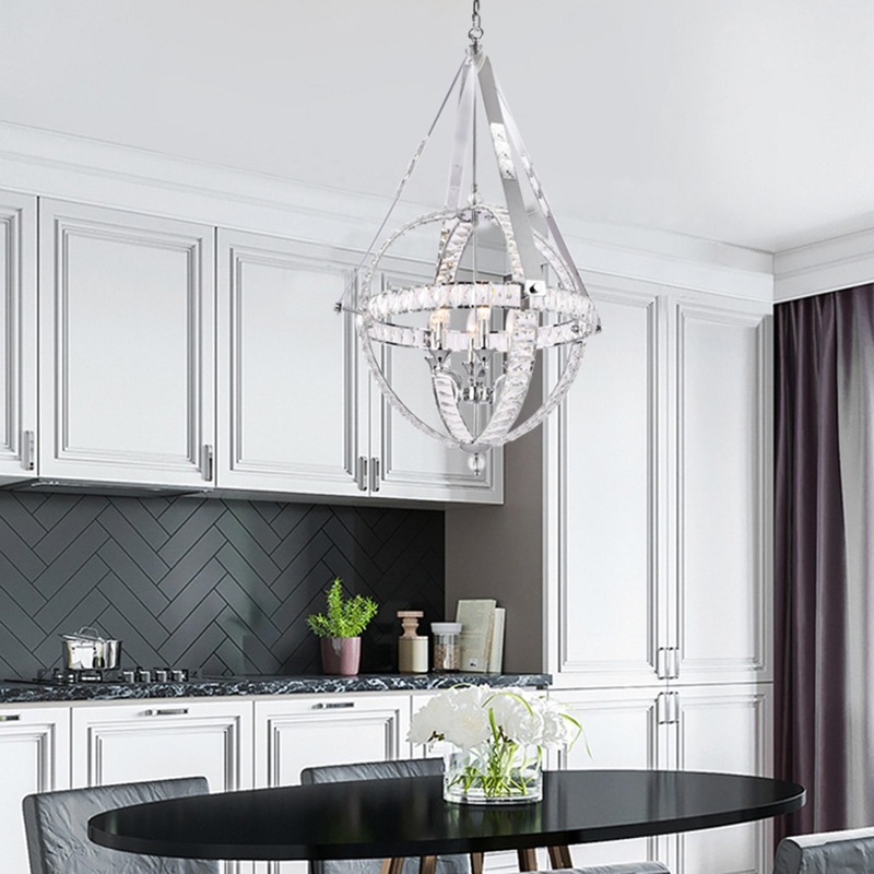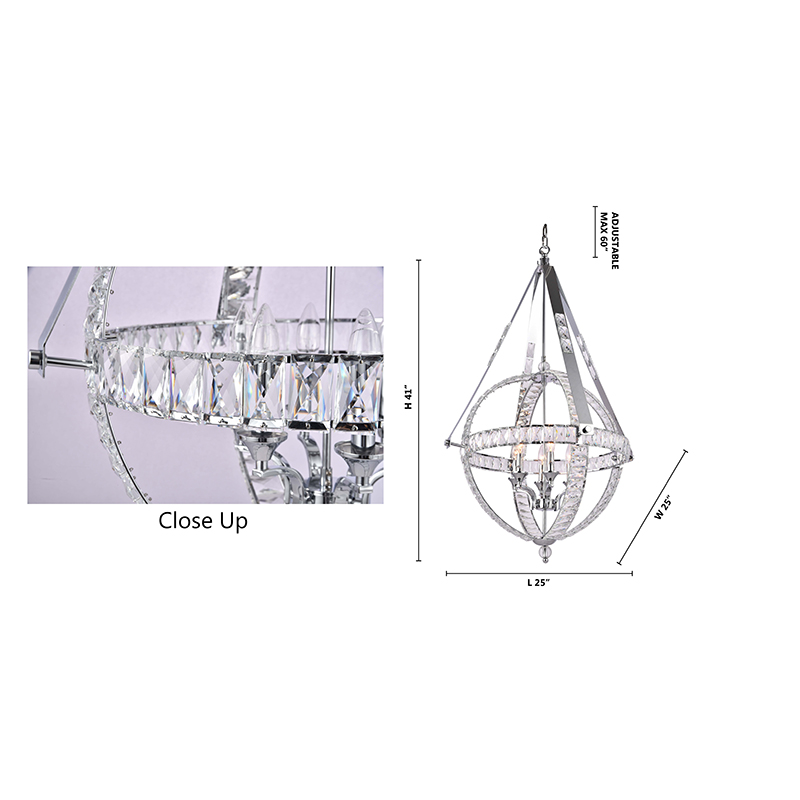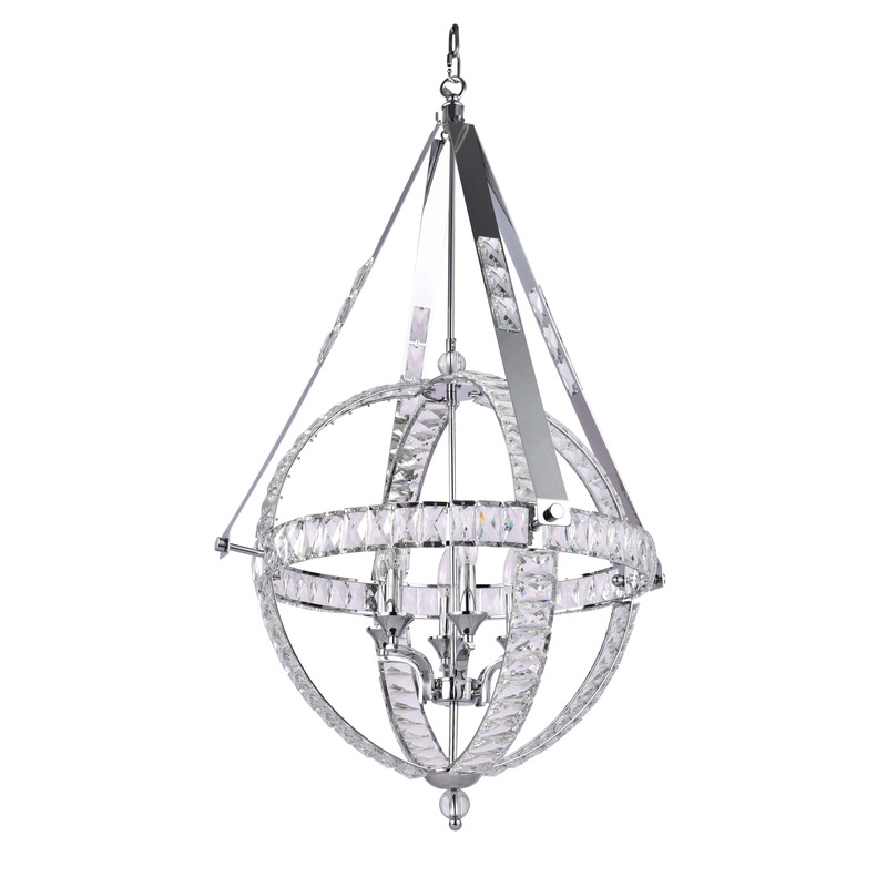 CLEAR CRYSTAL BASKET ORB CHANDELIER WITH CHROME HARDWARE