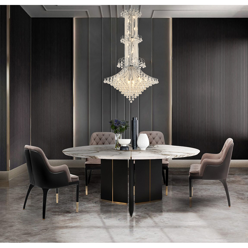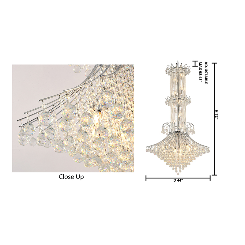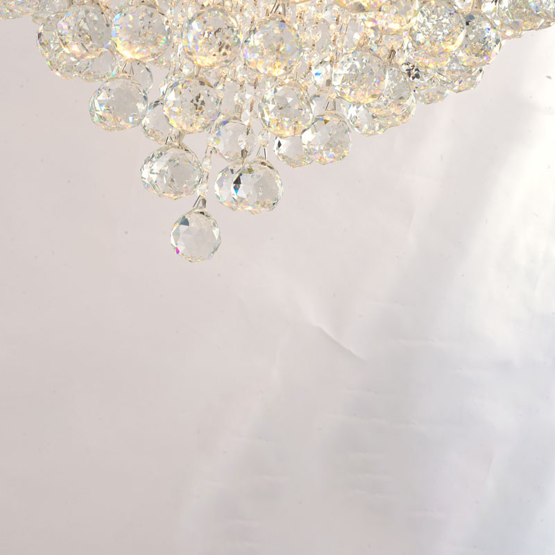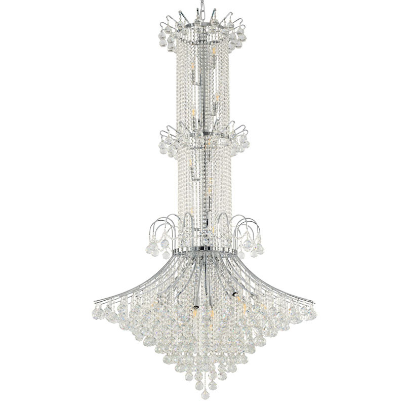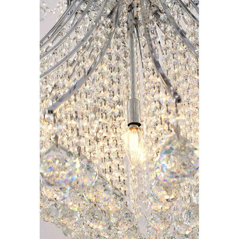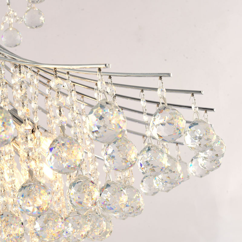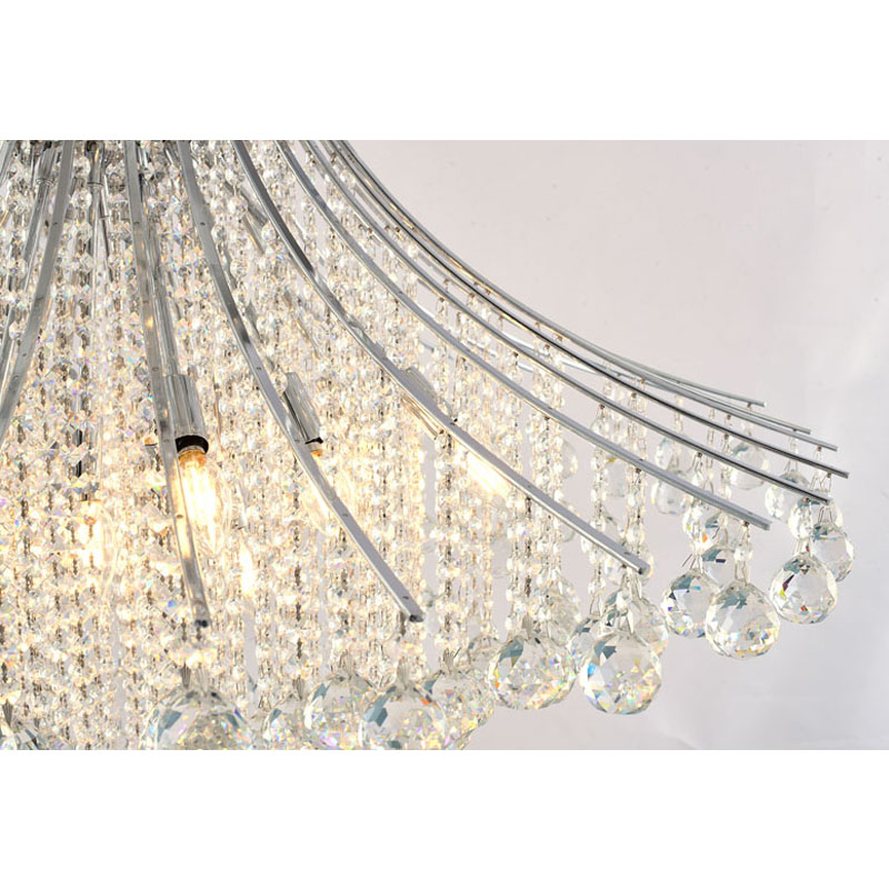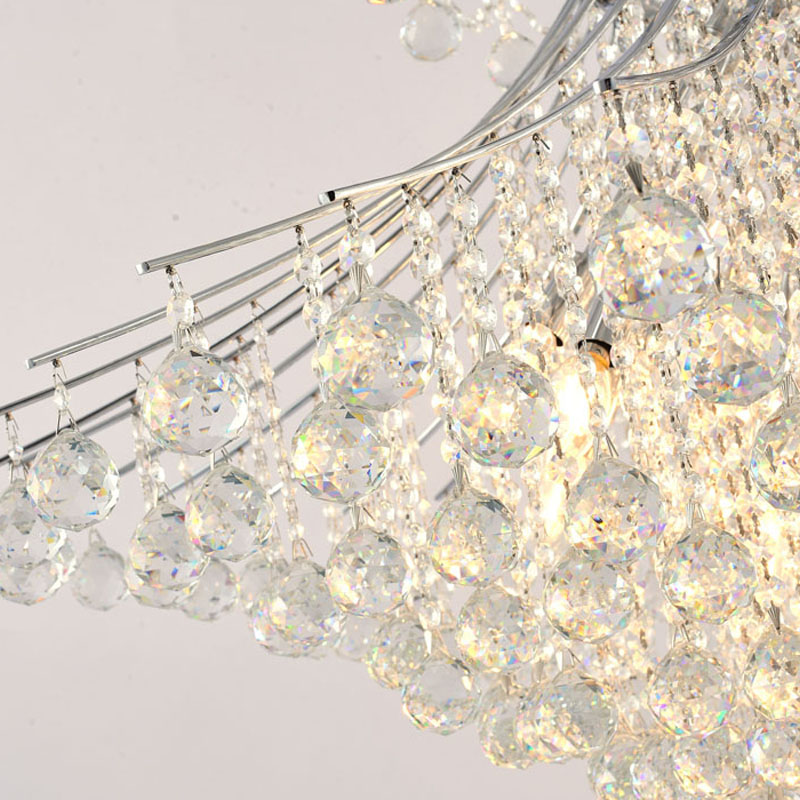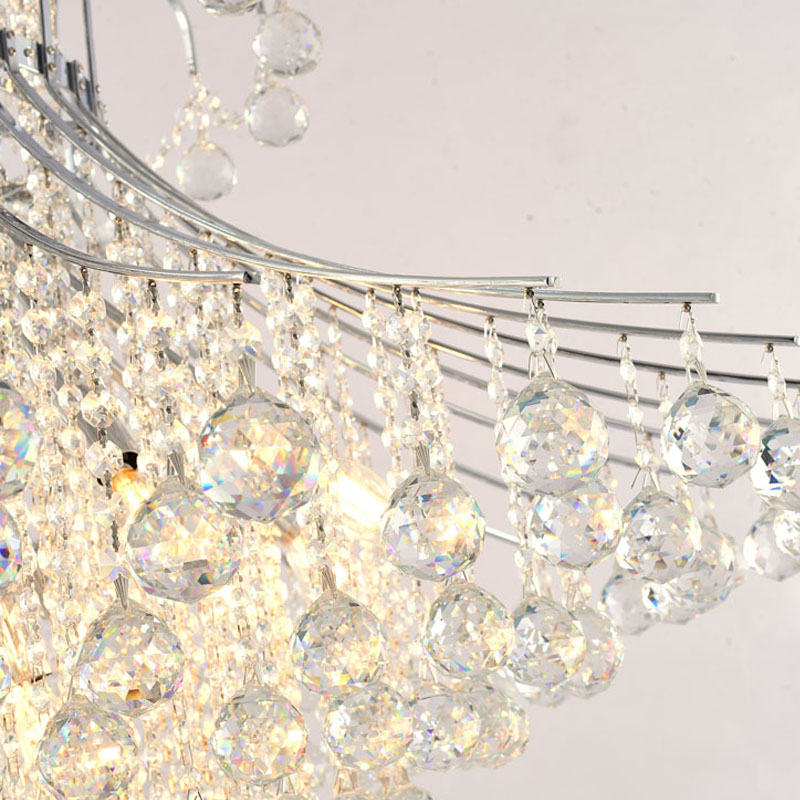 A CHROME FRAME WATERFALL CHANDELIER WITH CLEAR HANGING CRYSTALS