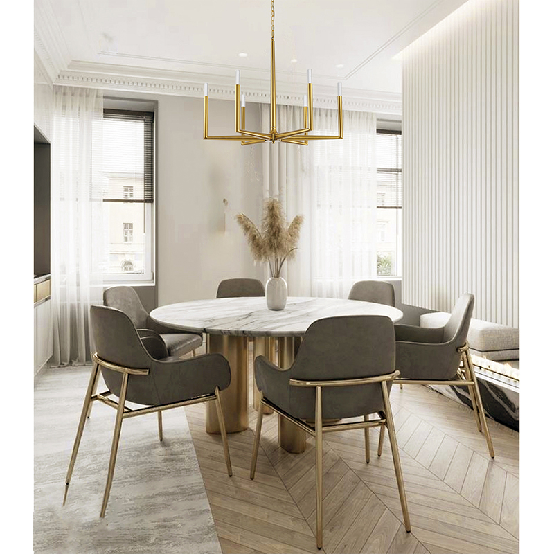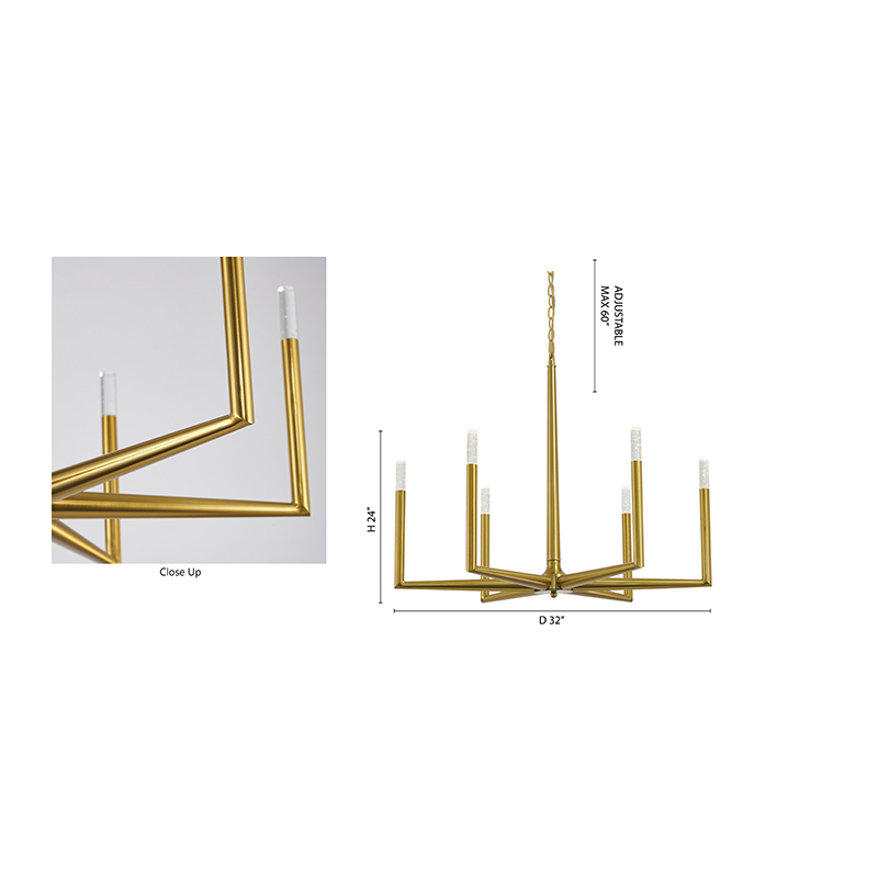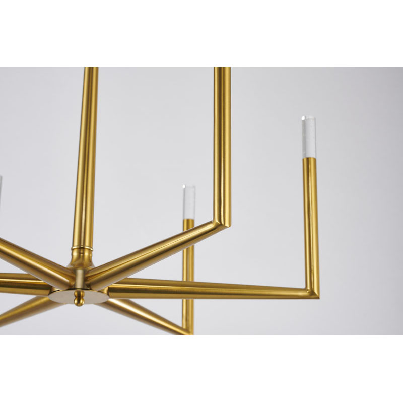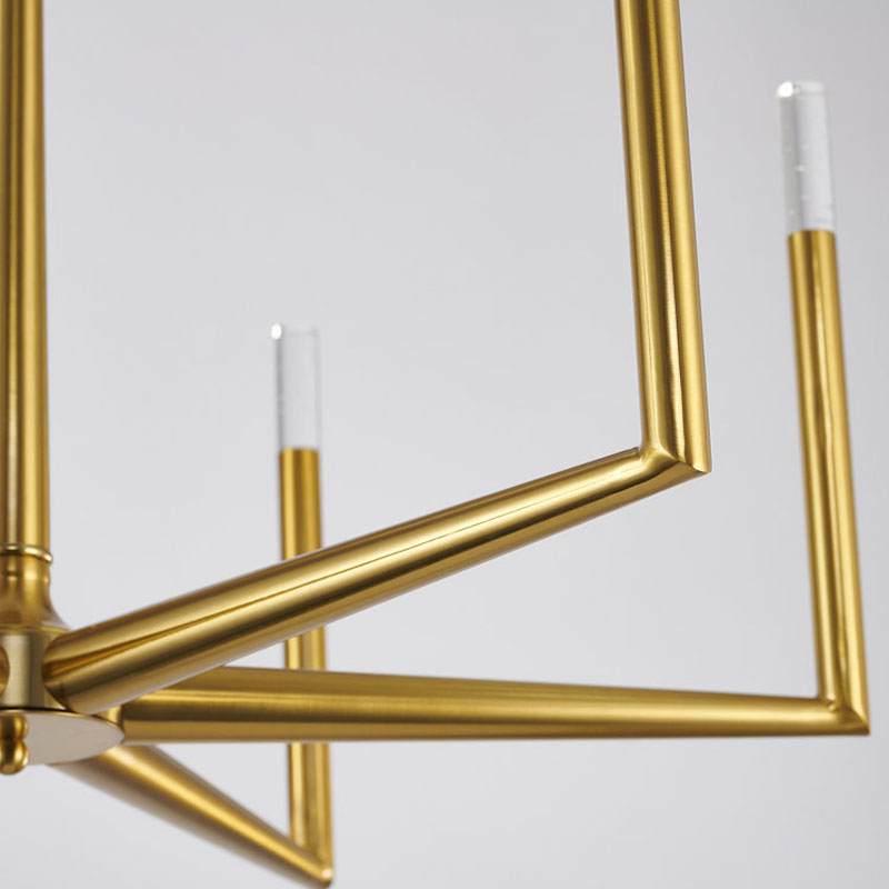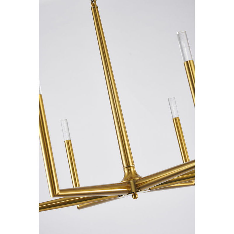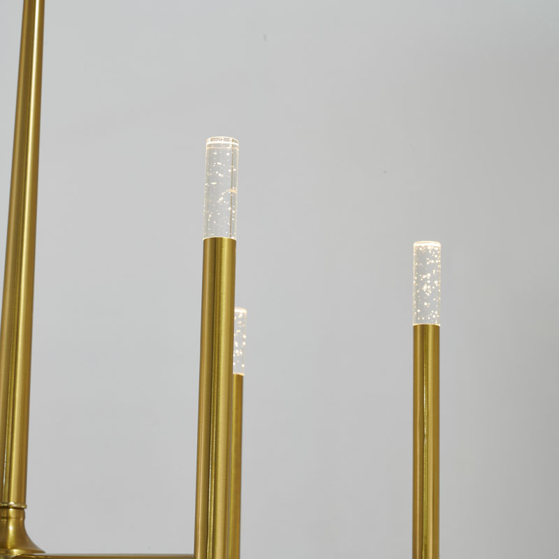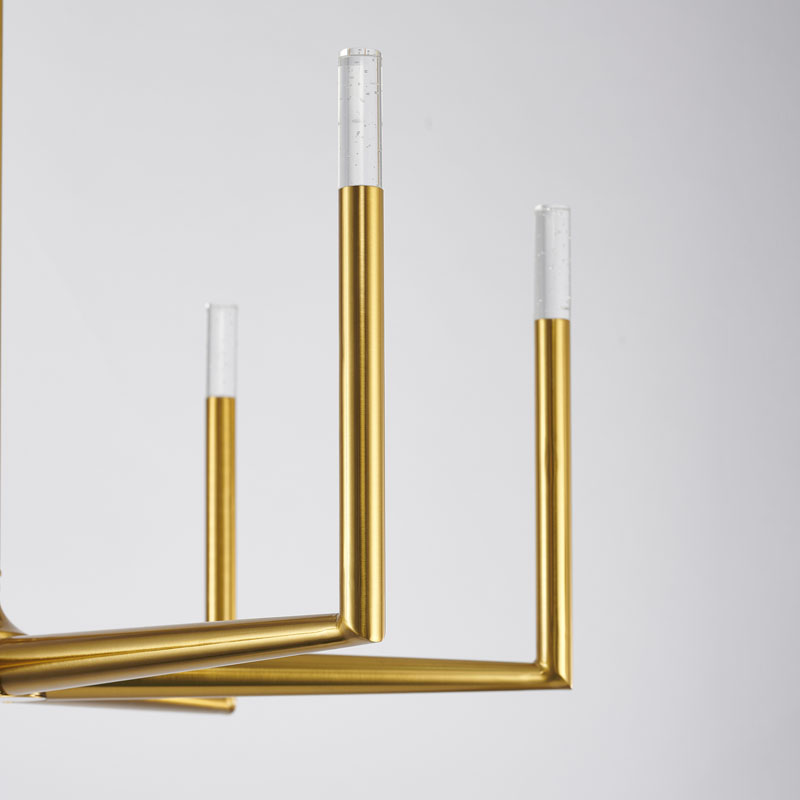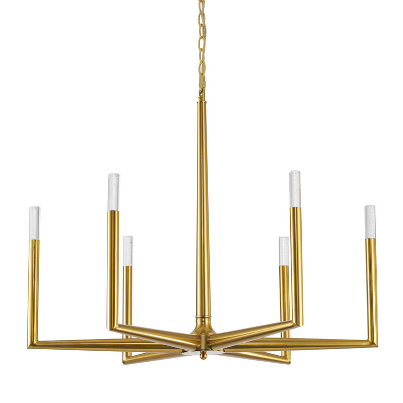 A SATIN BRASS FRAME CHANDELIER WITH CLEAR BUBBLE CRYSTAL SHADES