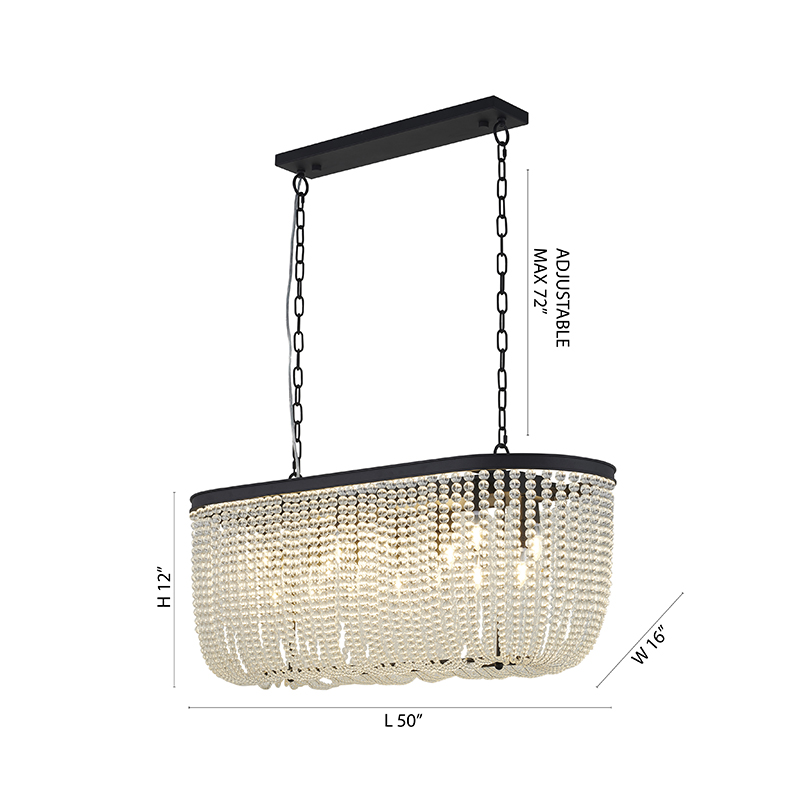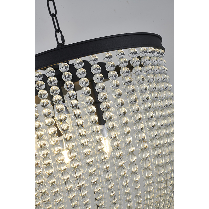 A SATIN BLACK OVAL FRAME CHANDELIER WITH CLEAR HANGING CRYSTAL BEADS
