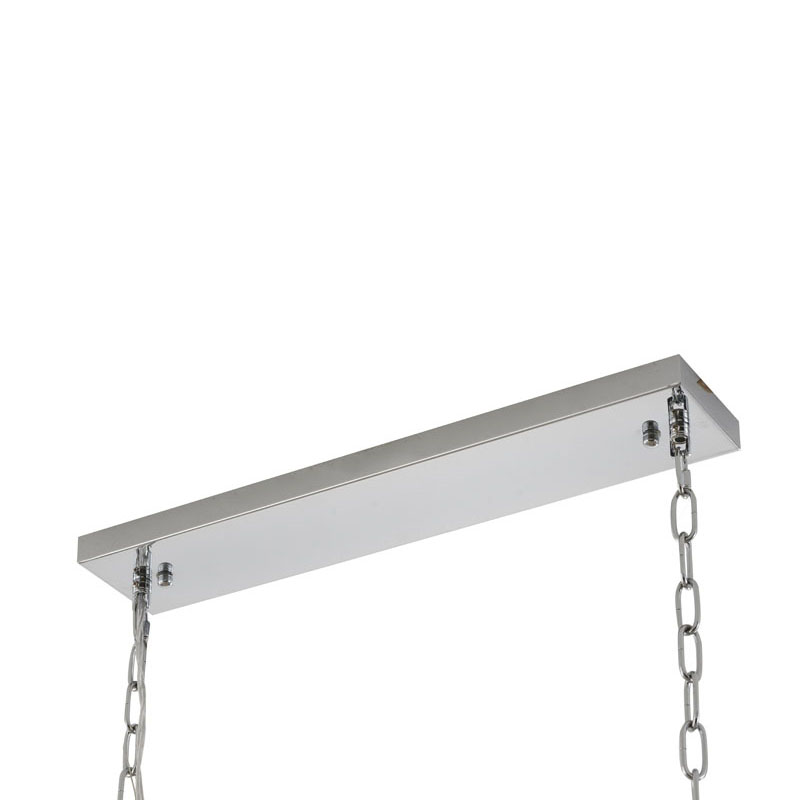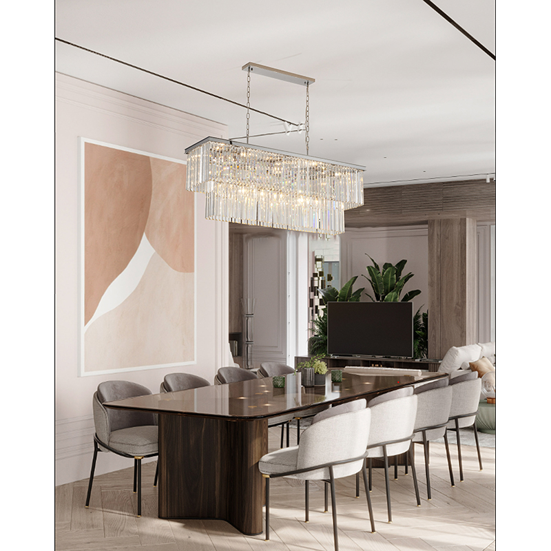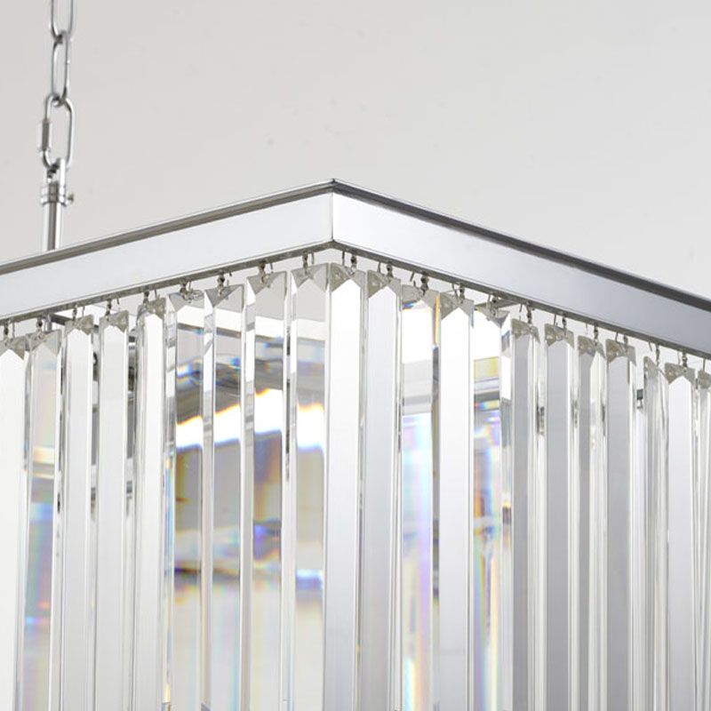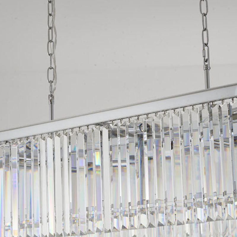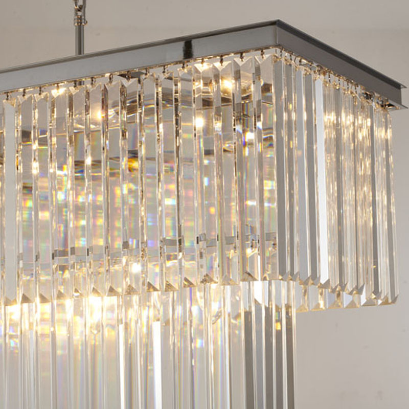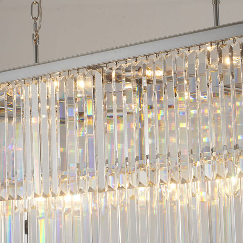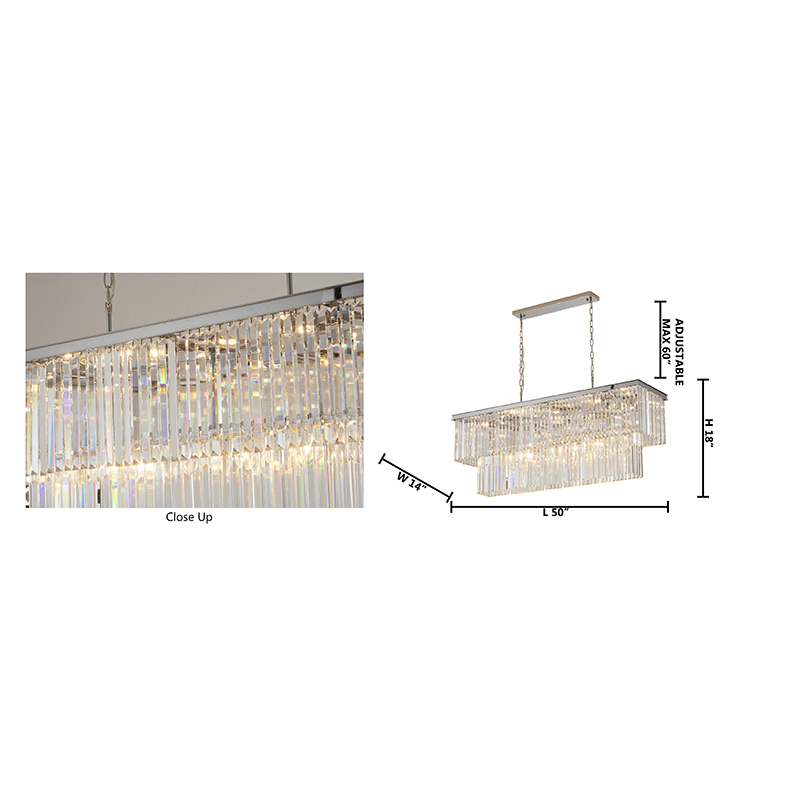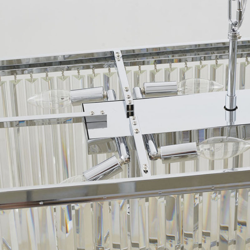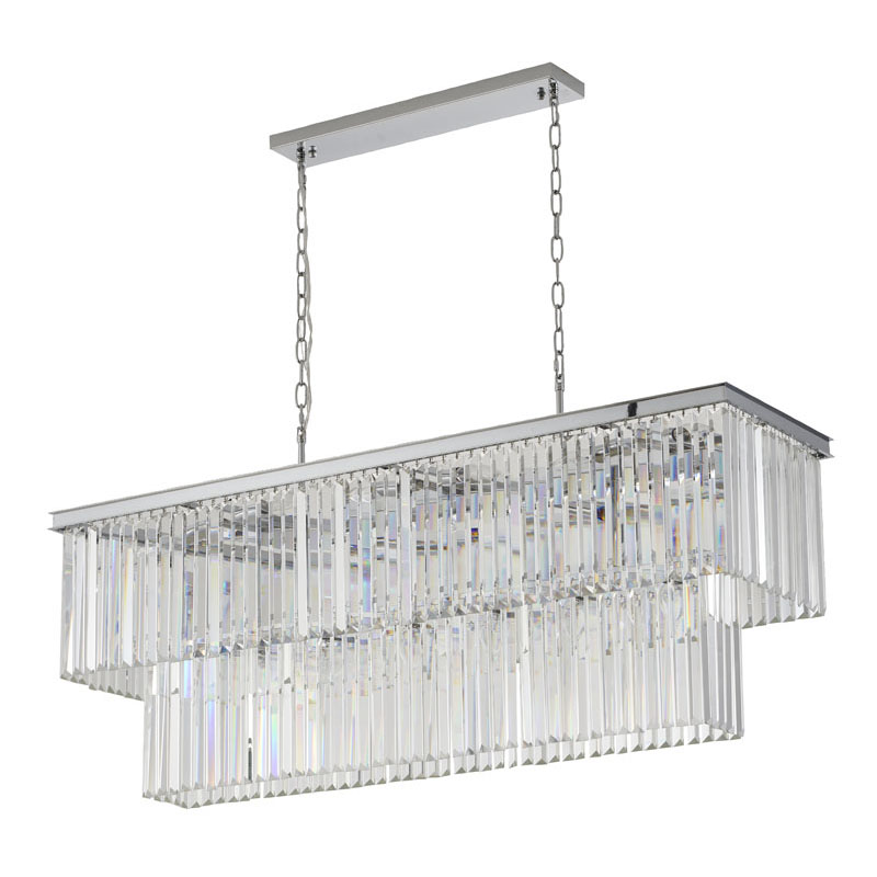 A TWO TIER CHROME FRAME CHANDELIER WITH CLEAR HANGING CRYSTALS