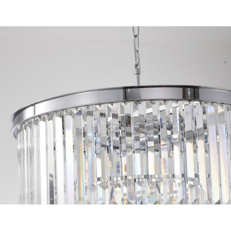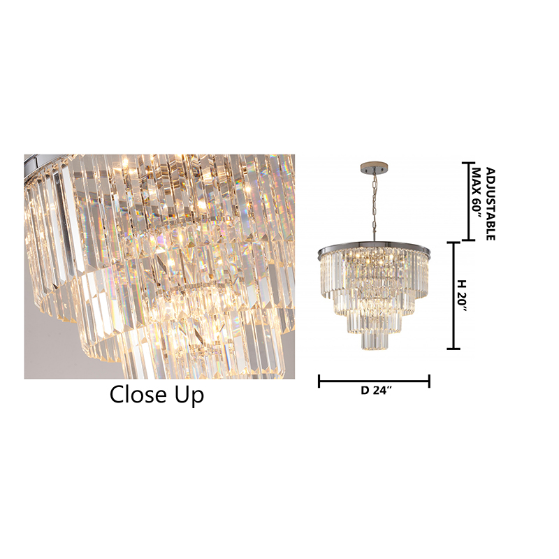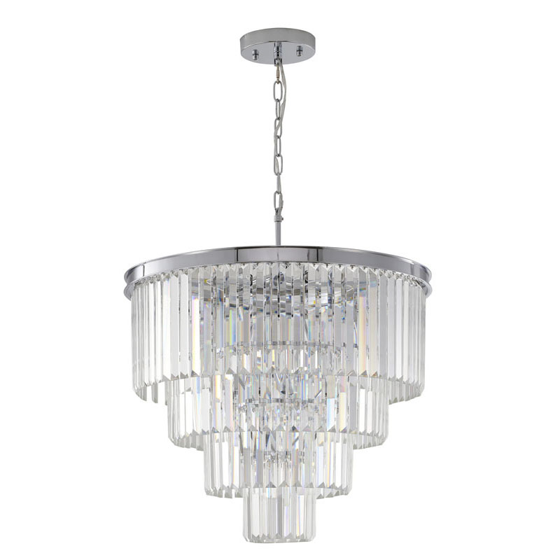 A FOUR TIER CHROME FRAME CHANDELIER WITH CLEAR HANGING CRYSTALS