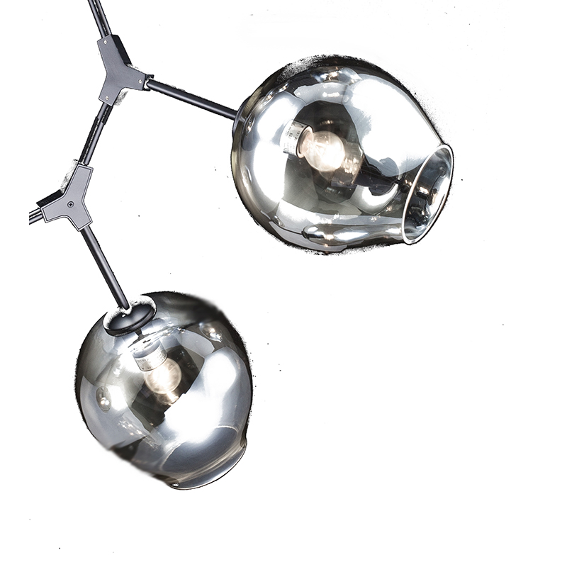 A BLACK FRAMED BRANCH LIGHT FIXTURE WITH CLEAR GLASS SHADES