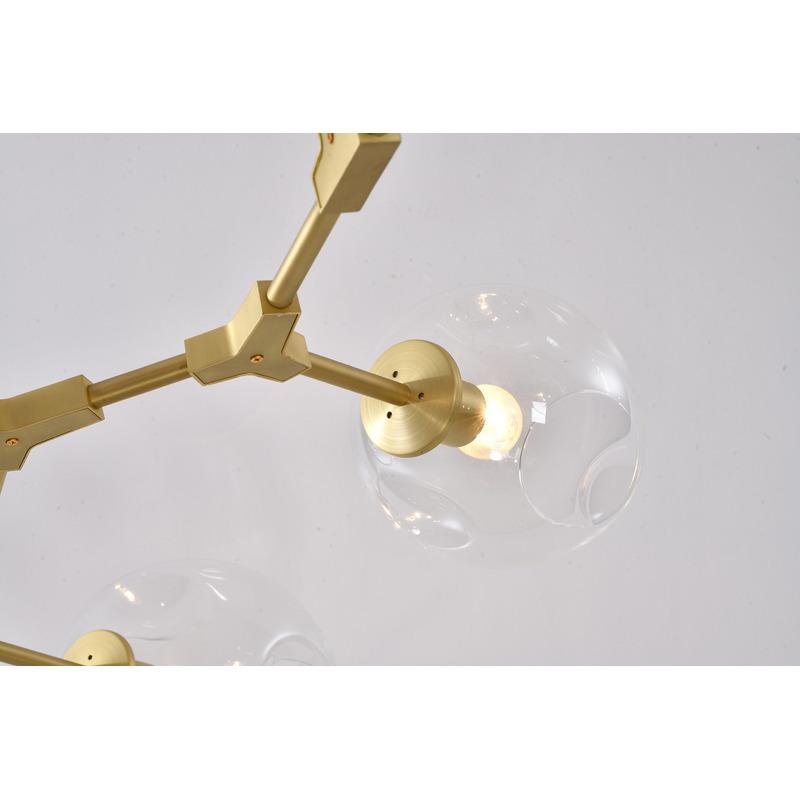 A GOLD FRAMED CHANDELIER WITH CLEAR GLASS DENTED SHADES