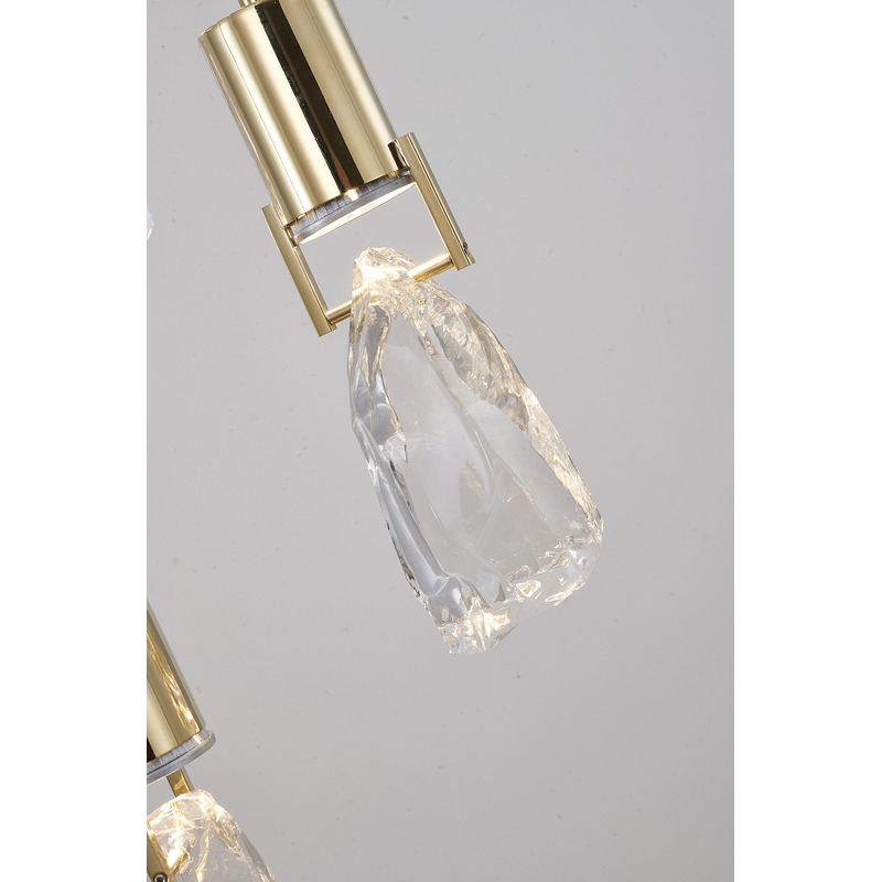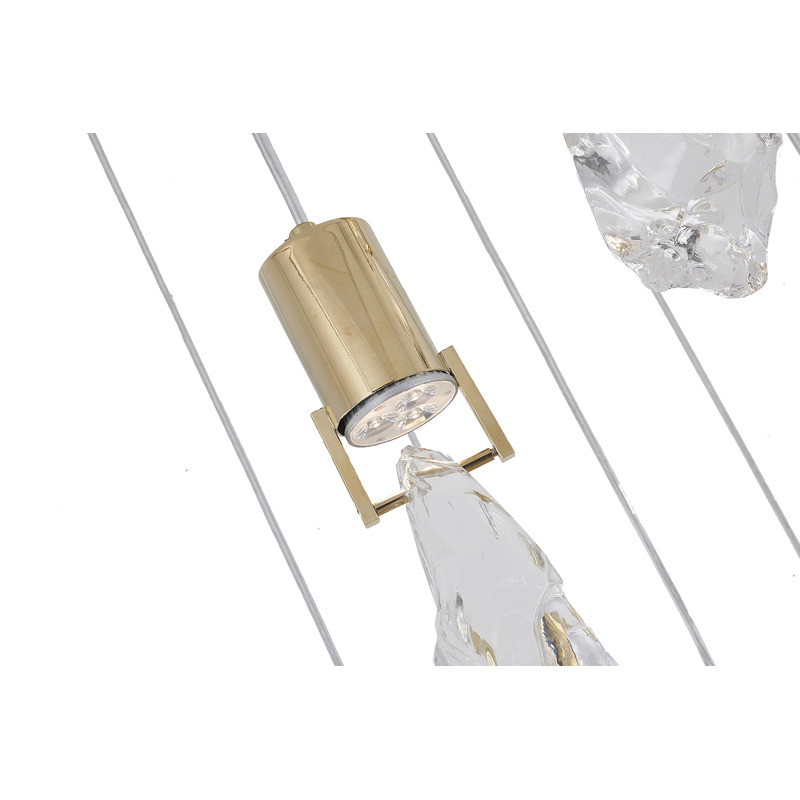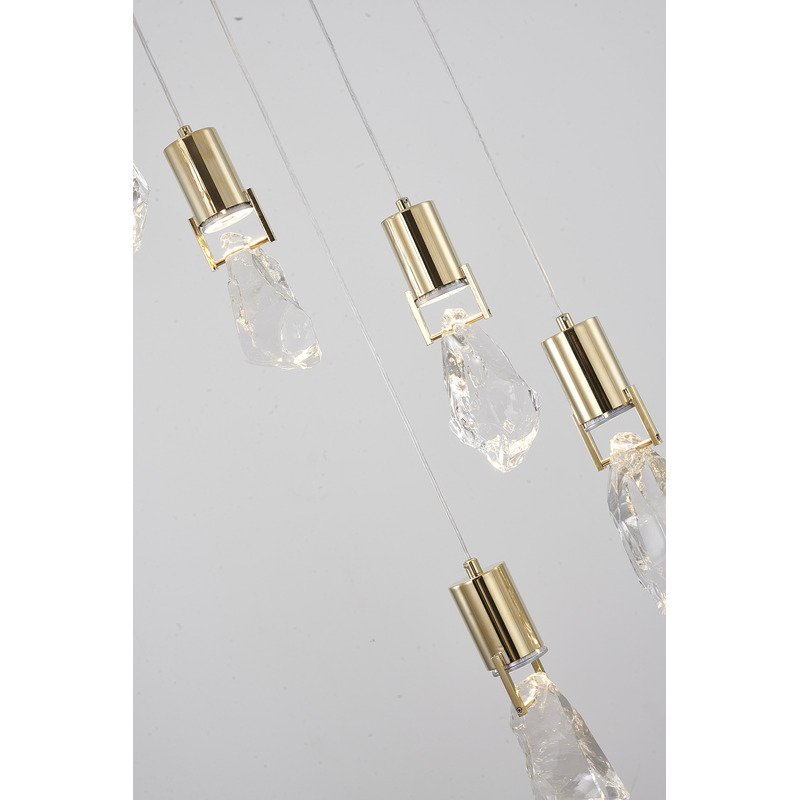 A BRUSHED GOLD CHANDELIER WITH CLEAR CRYSTAL STONE PENDANTS