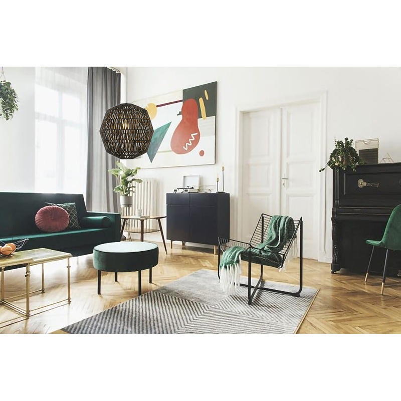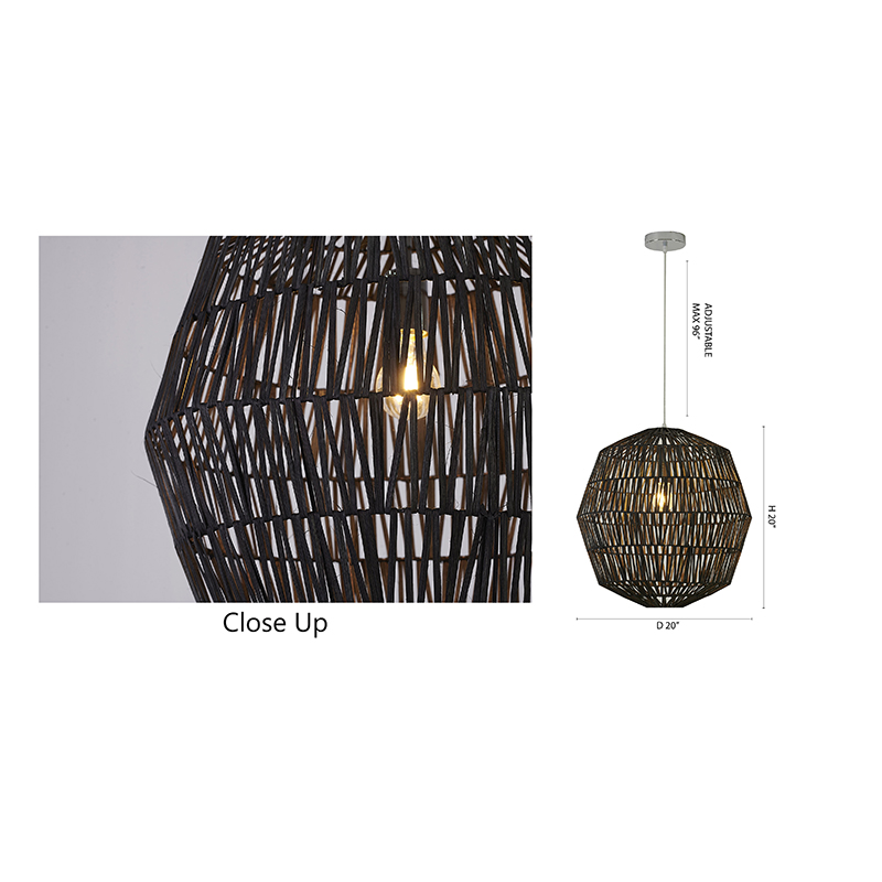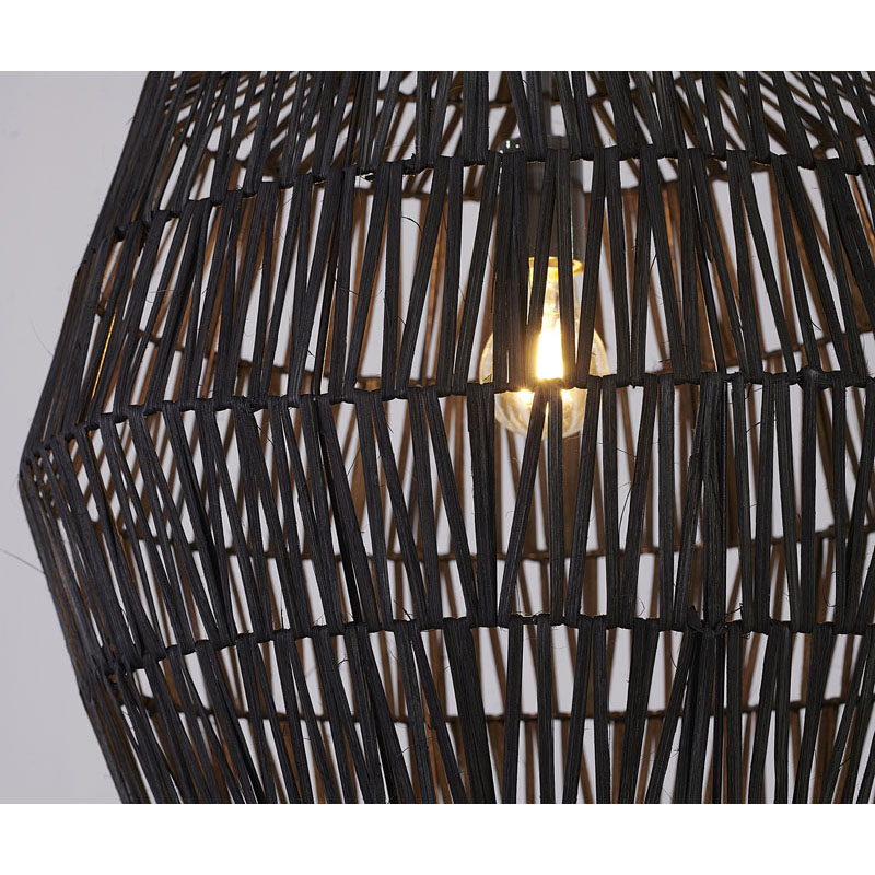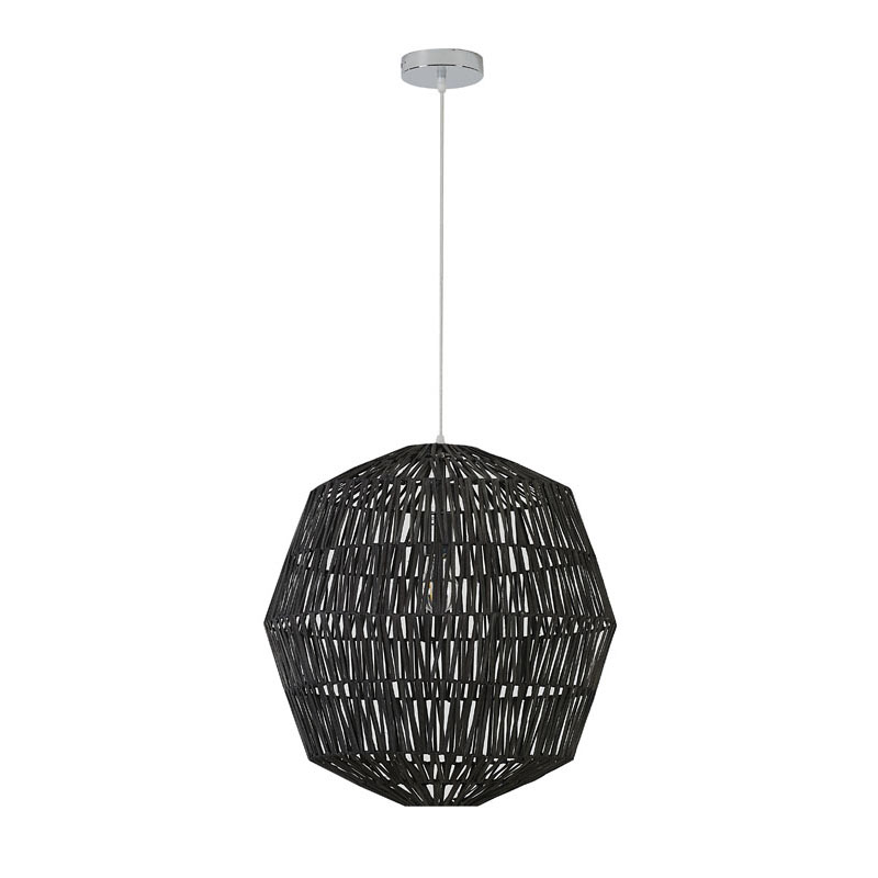 A BLACK WEAVED ROPE PENDANT LIGHT WITH CHROME HARDWARE
