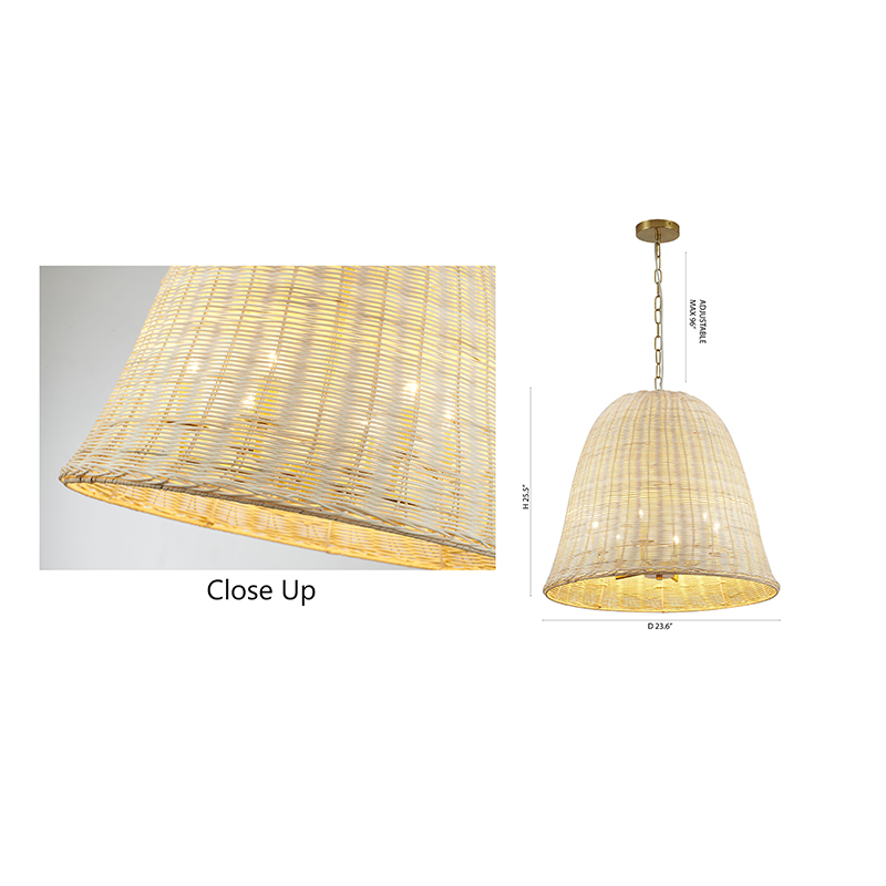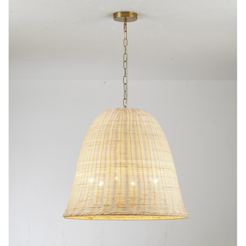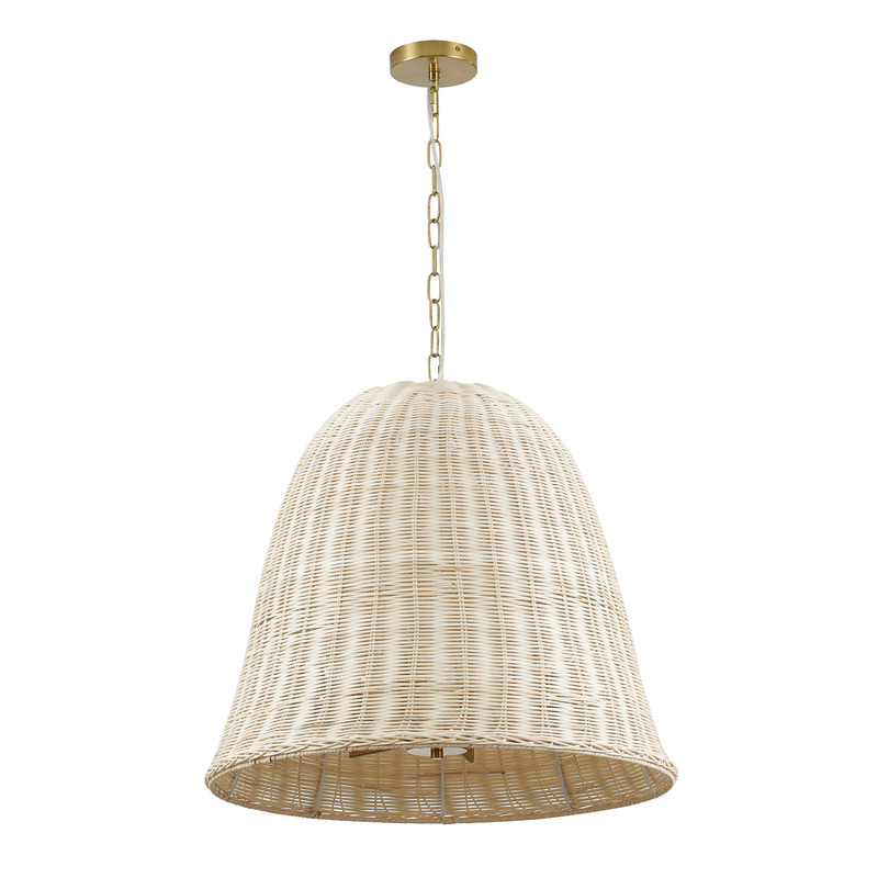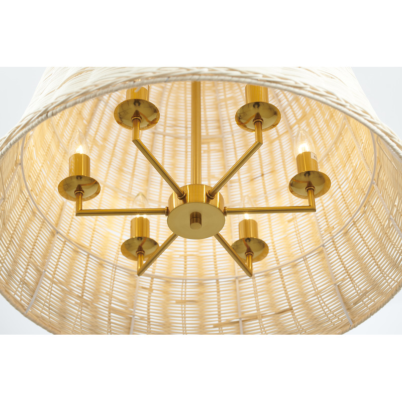 A NATURAL WHITE WOOD VINE BASKET CHANDELIER WITH BRASS HARDWARE